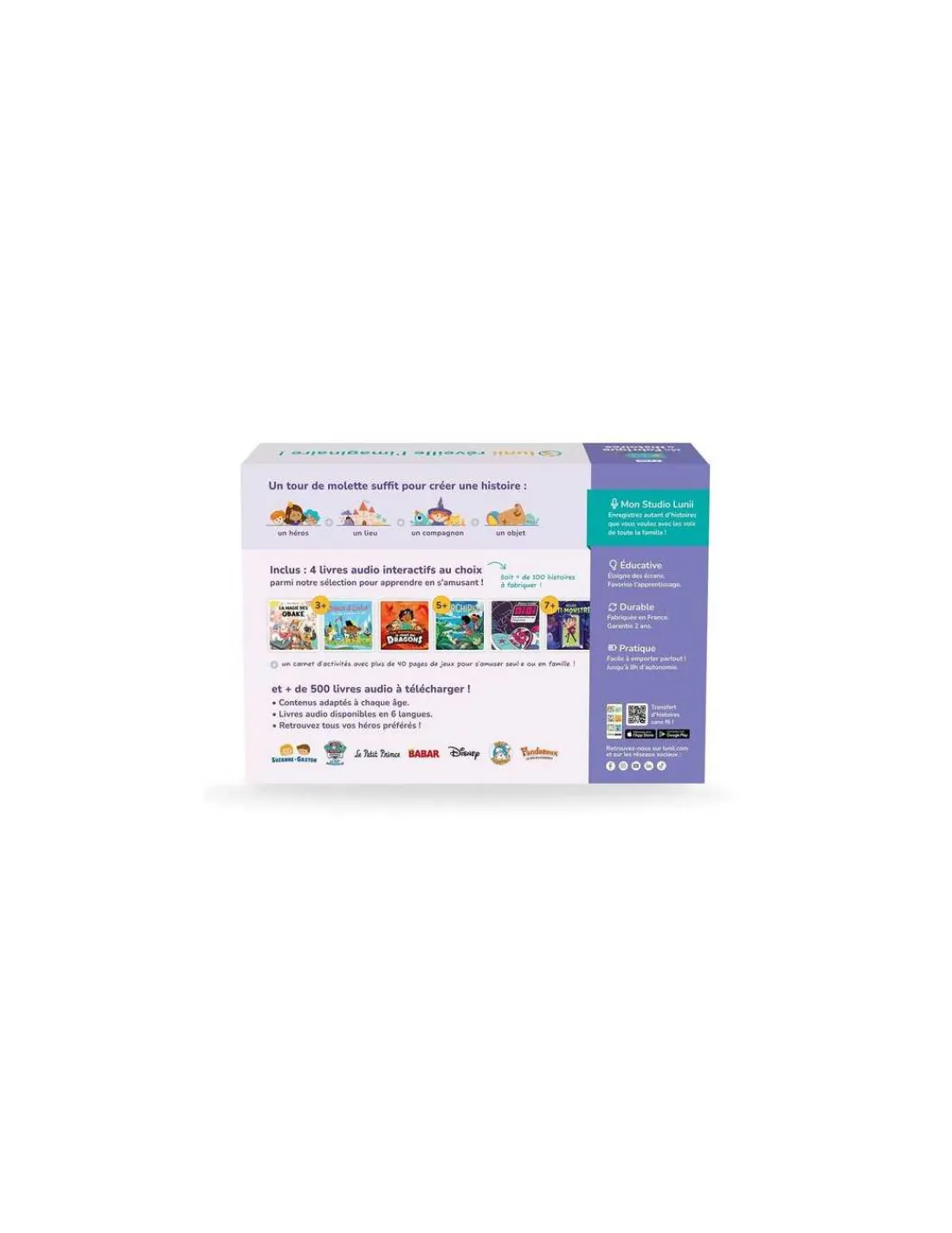 Faites évoluer l’expérience Lunii avec un catalogue riche de plus de 500 livres audio à télécharger. Histoires pour s’endormir, fictions originales, contes éducatifs, classiques Disney… Un large choix de contenus adaptés à chaque âge pour développer le vocabulaire, stimuler l’imaginaire et apprendre en s’amusant!