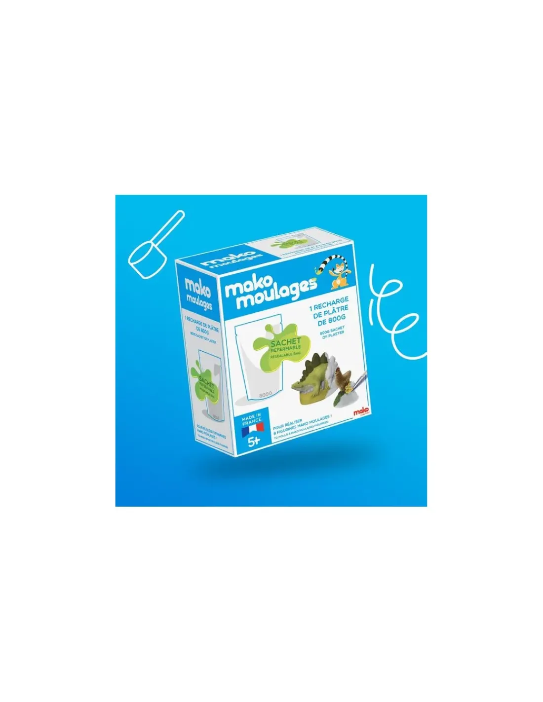 Découvrez la recharge de plâtre Mako moulages, un coffret recharge contentant un sachet de 800 grammes pour réaliser 6 nouvelles figurines et prolonger le plaisir de la création.
