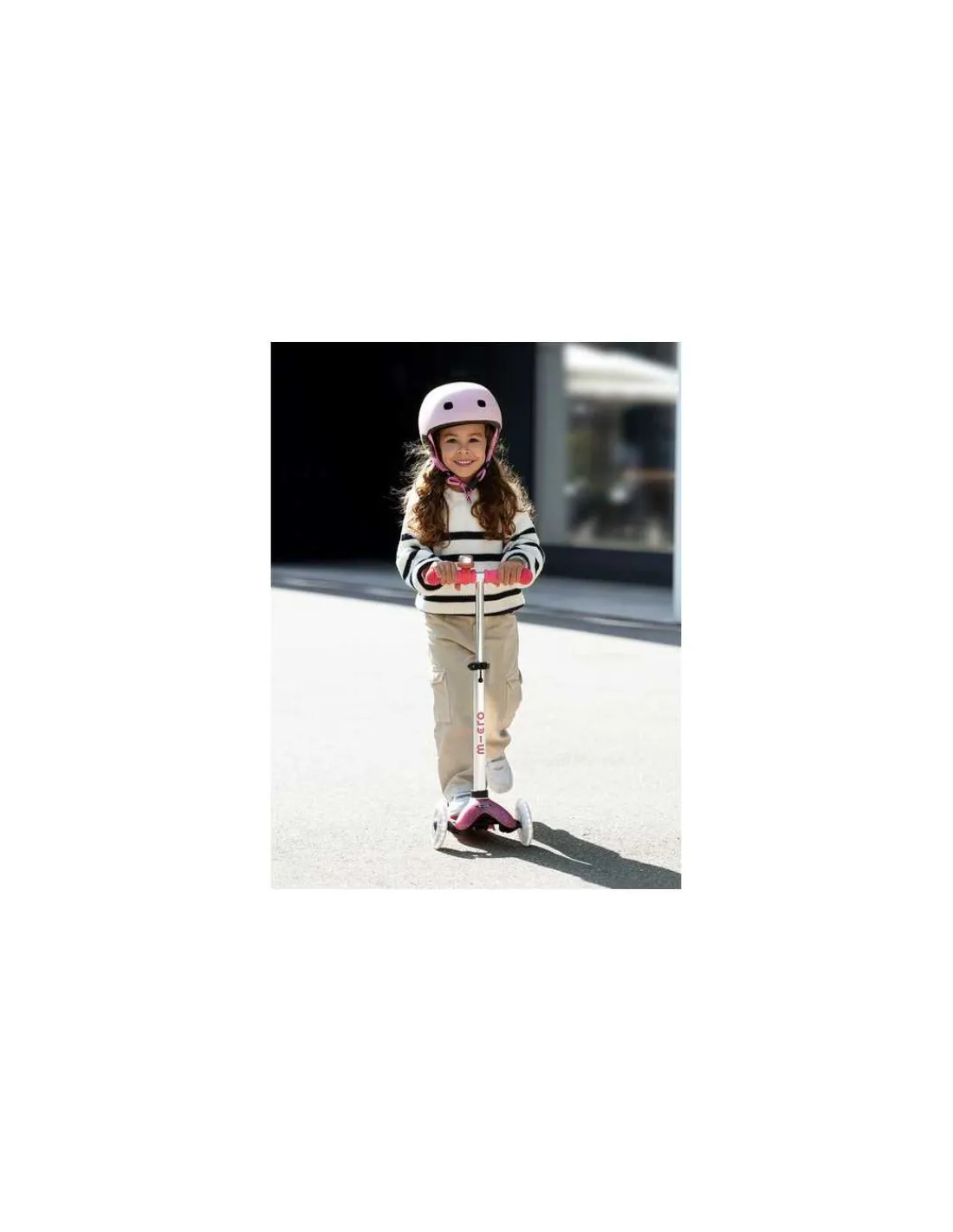 Découvrez la Trottinette Mini Micro Deluxe LED Glitter rose de Micro Mobility, une trottinette 3 roues avec des roues lumineuses pour les enfants de 2 à 5 ans. Une trottinette rose avec des paillettes !