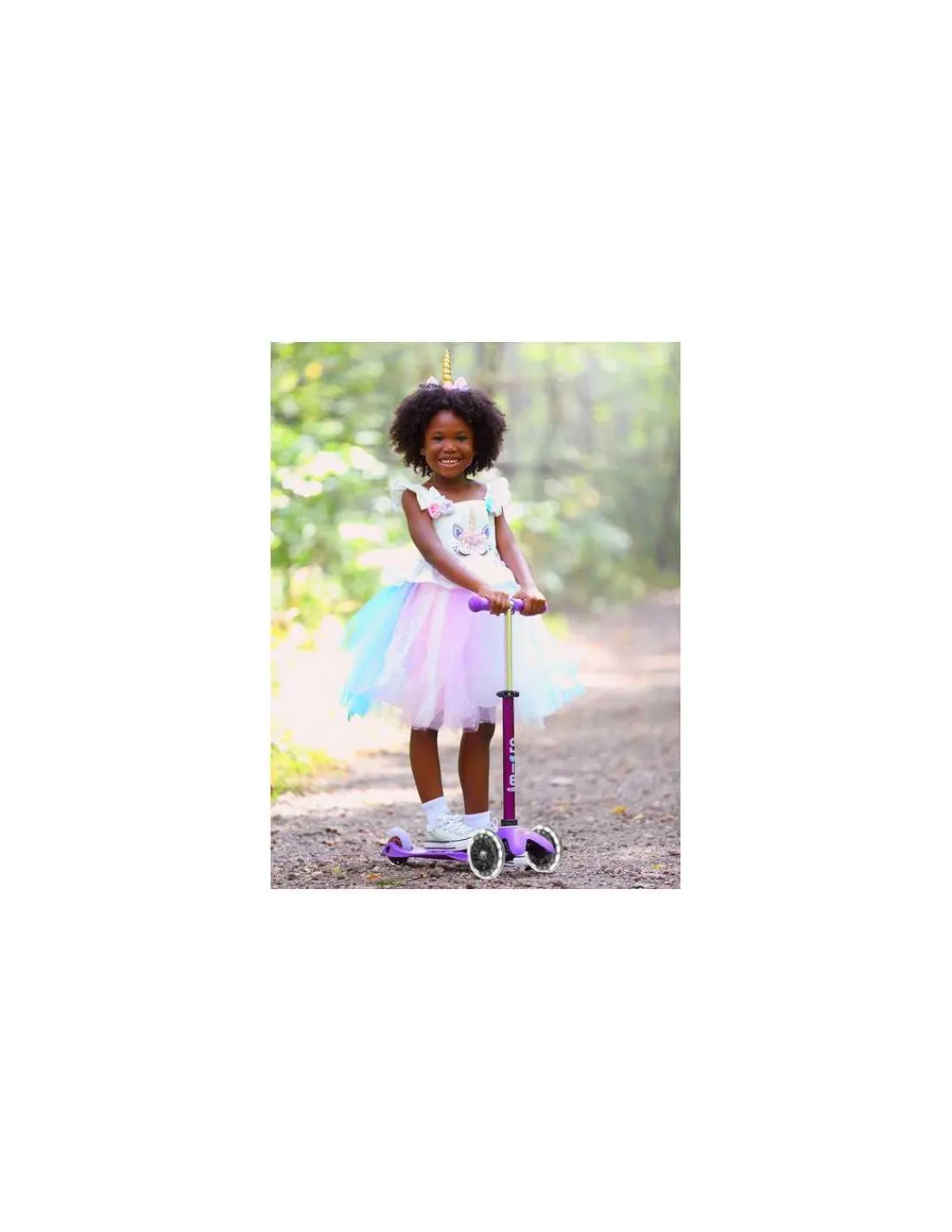 Découvrez la Trottinette Mini Micro Deluxe LED Violet de Micro Mobility, une trottinette 3 roues avec des roues lumineuses pour les enfants de 2 à 5 ans.