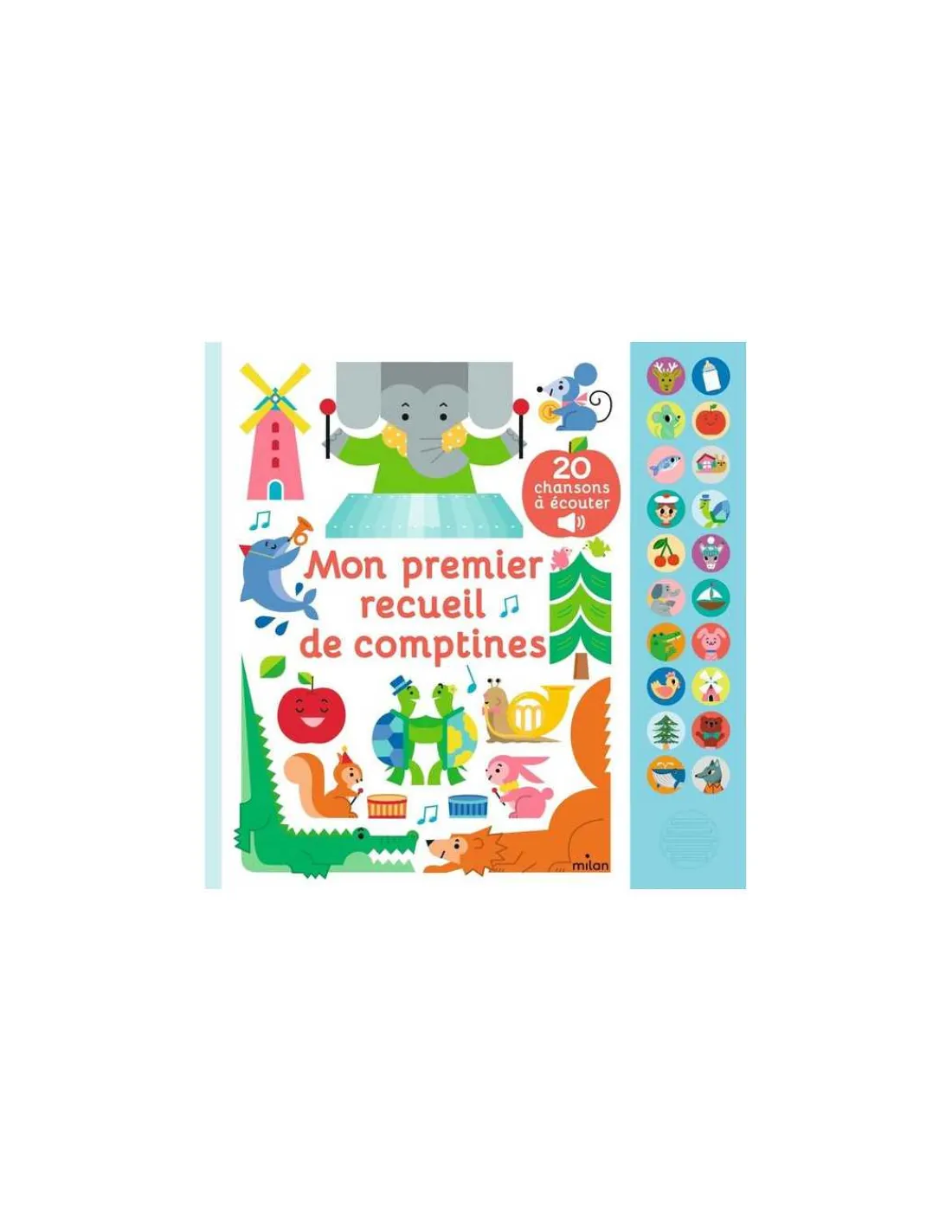 Découvrez Mon premier recueil de comptines des éditions Milan, un livre sonore grand format qui propose une sélection de 20 comptines pour les enfants.