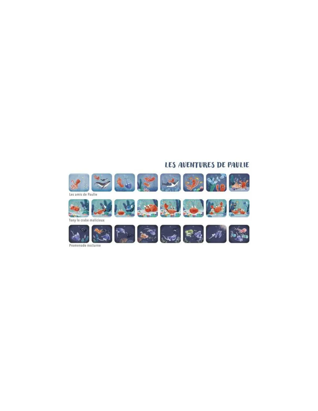 Découvrez la boite de 3 disques pour lampe à histoires de la collection Les aventures de Paulie de Moulin Roty, 3 histoires à insérer dans n’importe quelle lampe à histoire pour projeter 3 histoires sur le thème de la collection.