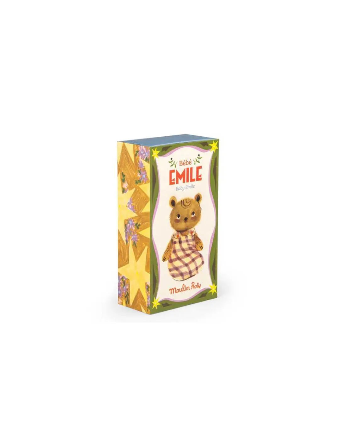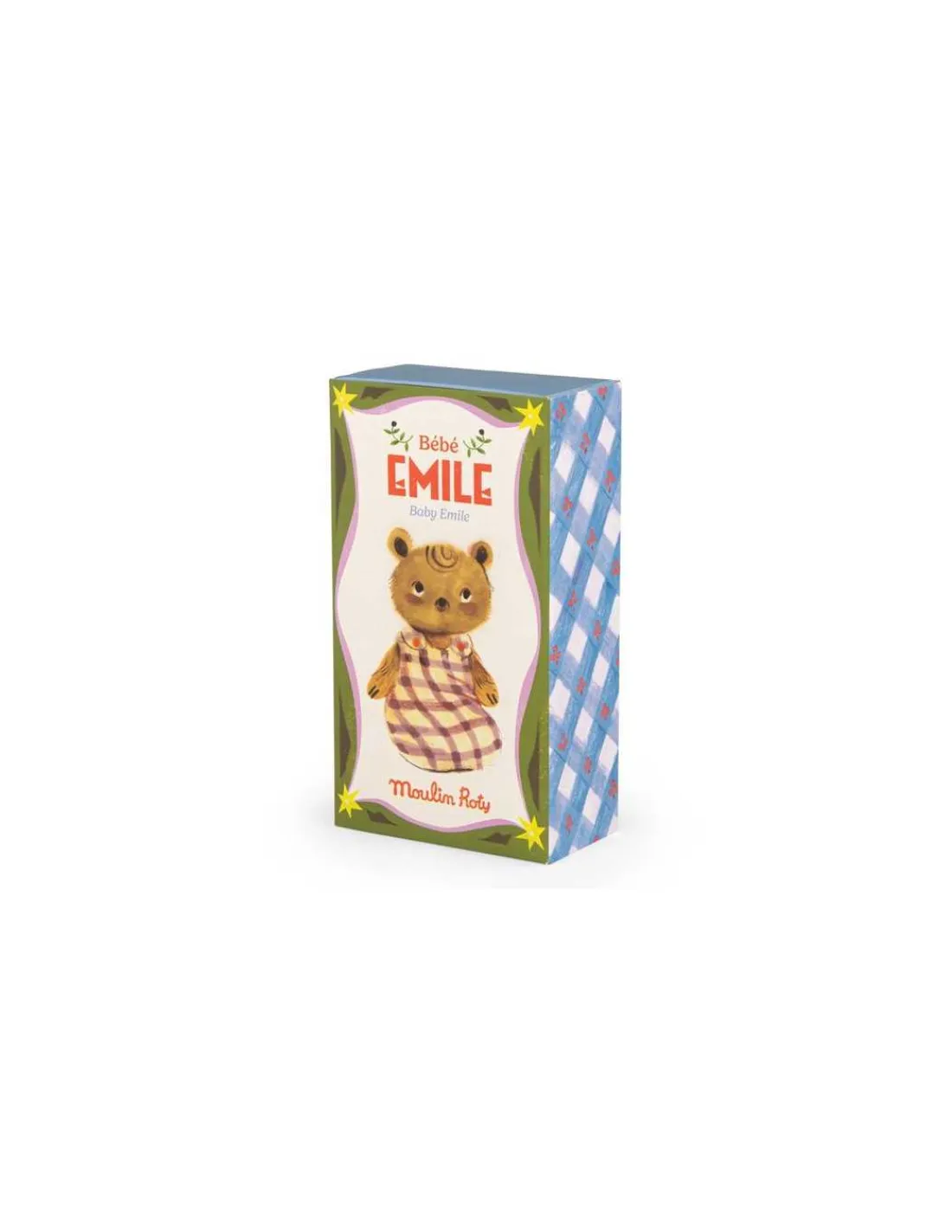 Bébé Emile rêve de devenir chasseur de papillons. Fin gourmet, il adore les gâteaux avec plein d’étages et aux couleurs sucrées. Avec ses jambes articulées, il est possible de l’asseoir et de retirer sa jolie gigoteuse à carreaux amovible à scratchs.