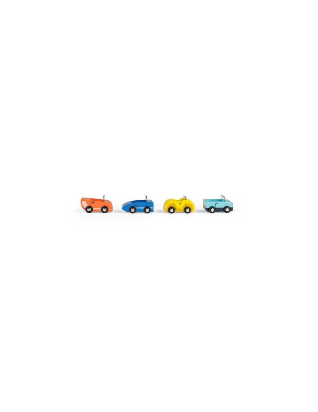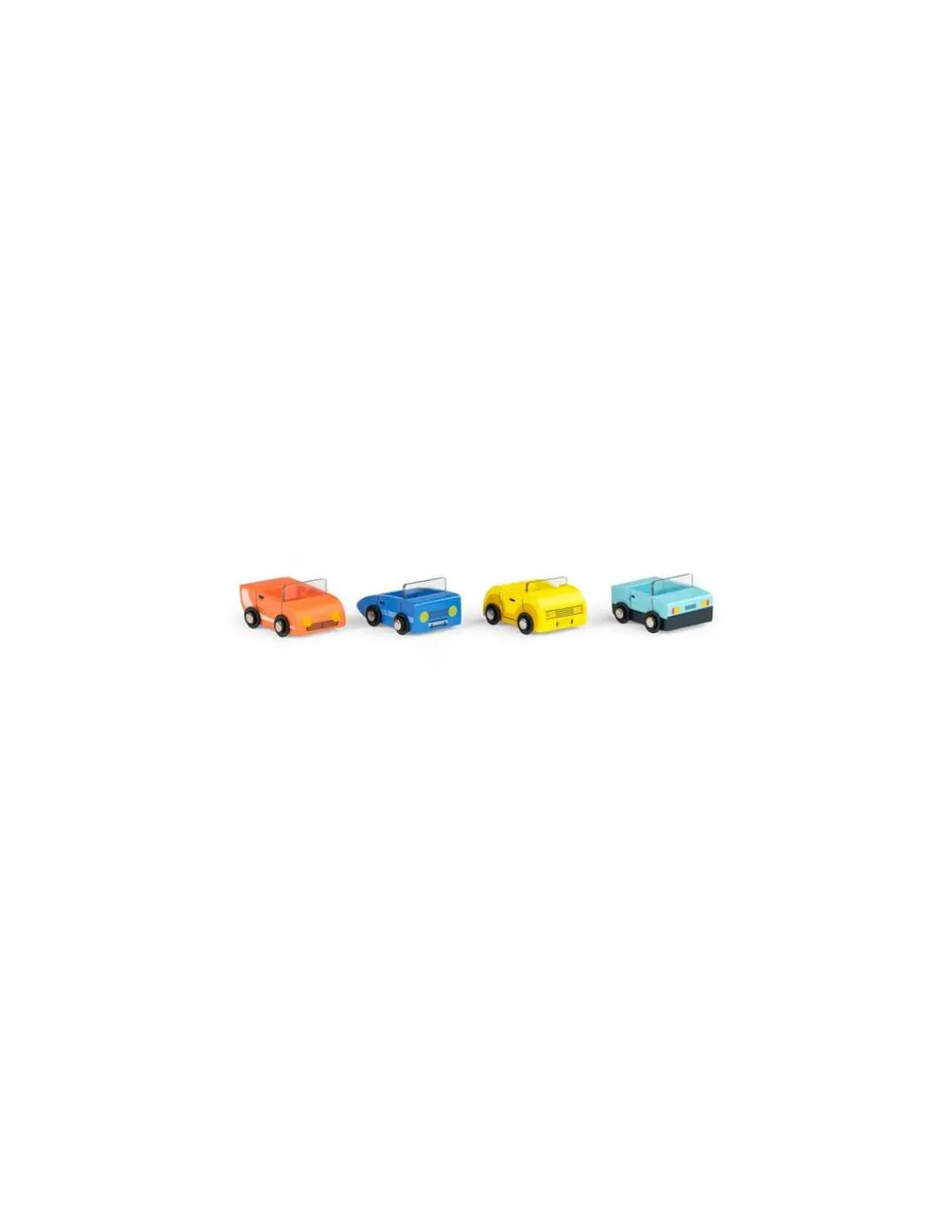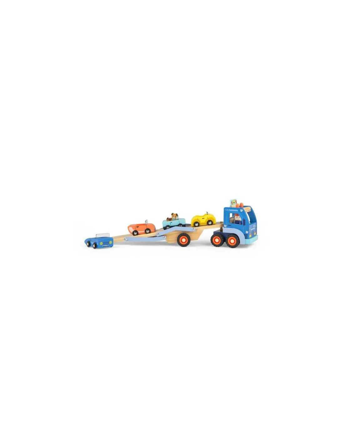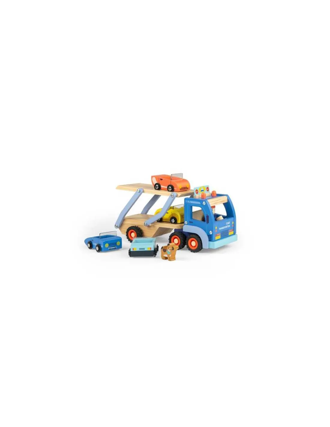 Grâce au chauffeur accompagné de son petit chien, les 4 jolies voitures arriveront à bon port à bord de ce magnifique camion en bois ! Des heures de jeu en perspective.