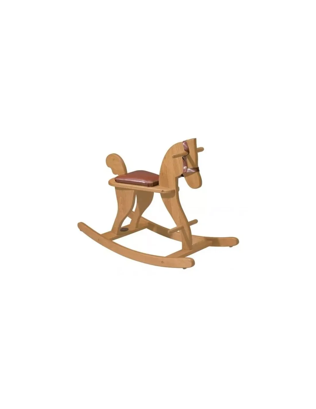 Ce magnifique cheval est intemporel et authentique, en hêtre massif verni et avec une assise en simili cuir, il décorera la chambre et éveillera bébé.