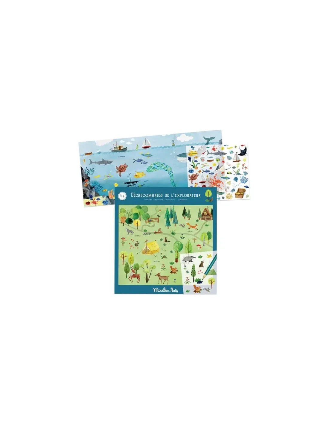 Découvrez les décalcomanies de l’explorateur de la collection Le jardin du moulin de Moulin Roty, une activité créative et ludique à partir de 4 ans.
