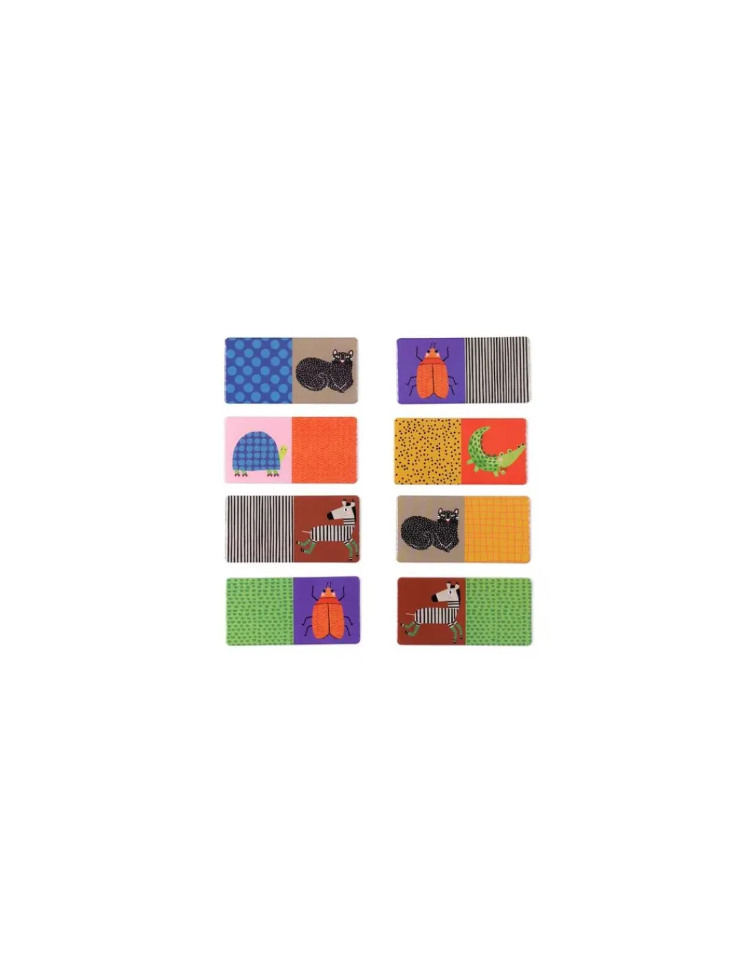 Découvrez le jeu Dominos des motifs de la collection Les toupitis de Moulin Roty, un jeu éducatif de dominos pour les enfants dès 3 ans.