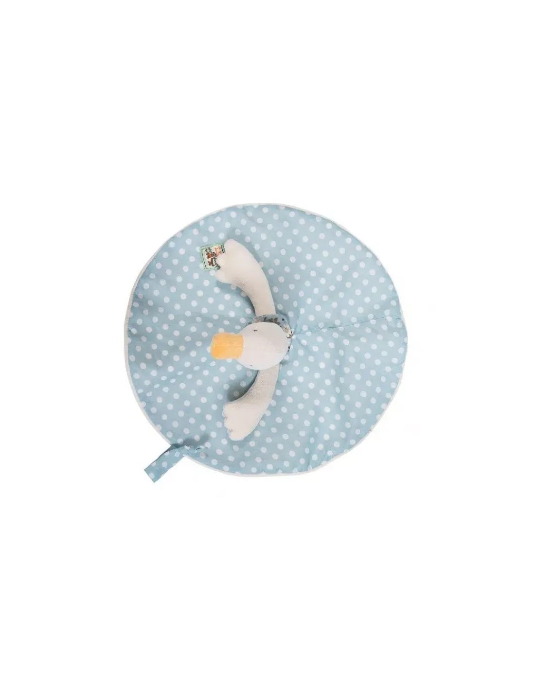 Découvrez le doudou Jeanne la cane de la collection La grande famille de Moulin Roty, un doudou plat de forme ronde avec la tête de Jeanne qui ressort. Un doudou bleu à pois blanc que votre enfant va tout de suite adopter et qu’il pourra attraper par le bec de Jeanne ou ses bras.