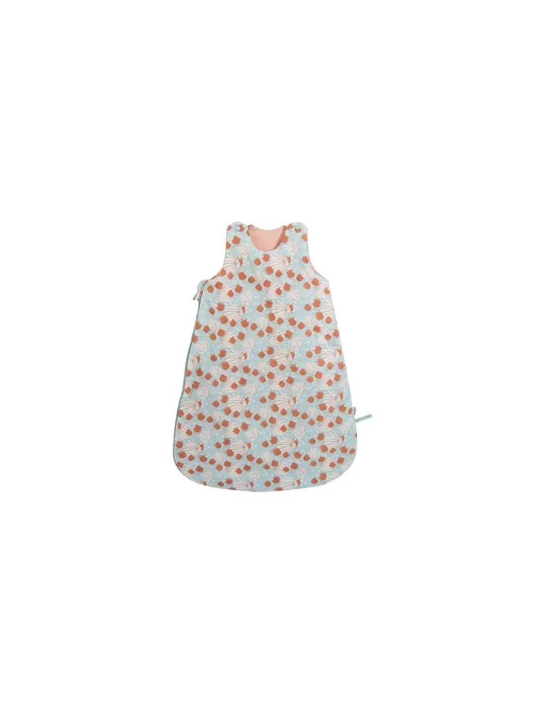 Découvrez la gigoteuse fleurie bleue de la collection Après la pluie de Moulin Roty, une turbulette 100% coton de 70 cm à offrir en cadeau de naissance pour les bébés de 0 à 6 mois. Un sac de couchage en matières naturelles avec un tissu 100% coton pour laisser respirer la peau de bébé, avec imprimé de fleurs à l’extérieur et doublure en toile rose.