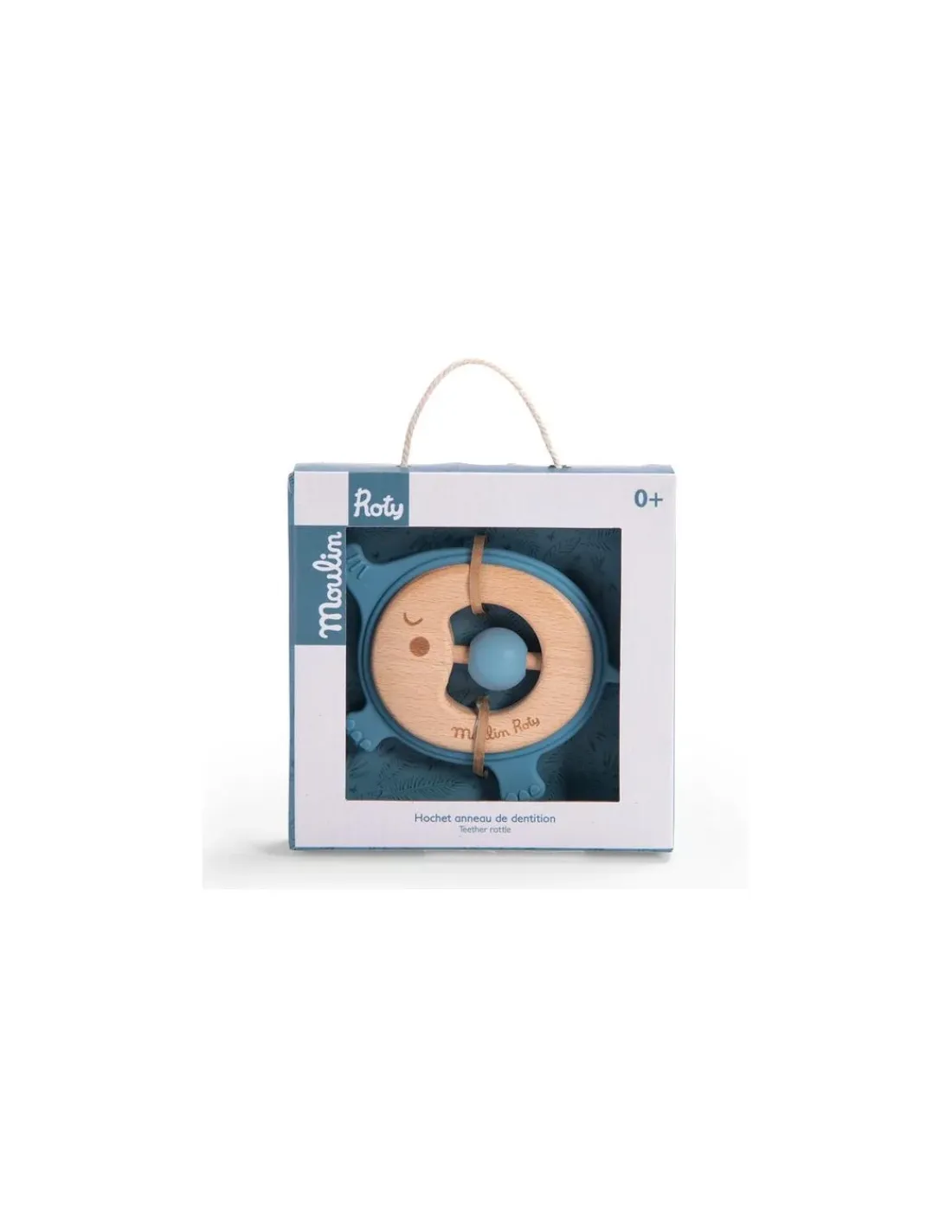 Découvrez le hochet anneau de dentition éléphant de la collection Sous mon Baobab de Moulin Roty, un jouet d’éveil en bois et en silicone qui accompagnera bébé au quotidien.