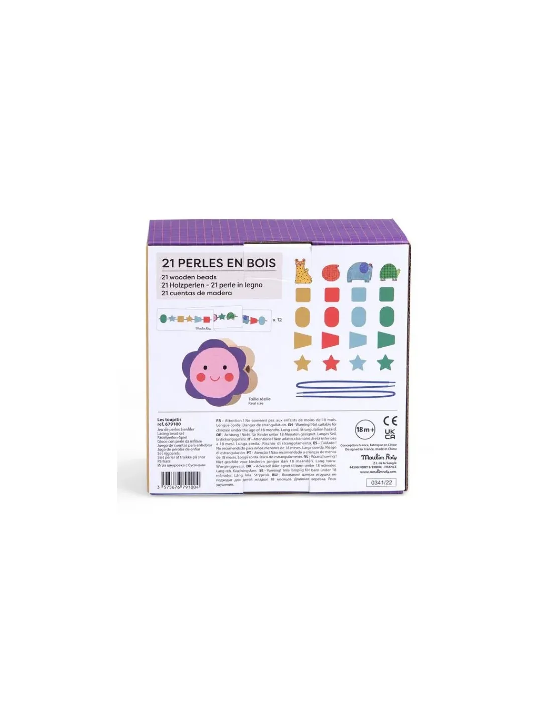 Découvrez le Jeu de perles en bois à enfiler de la collection Les toupitis de Moulin Roty, un jeu éducatif en bois pour les enfants à partir de 18 mois.