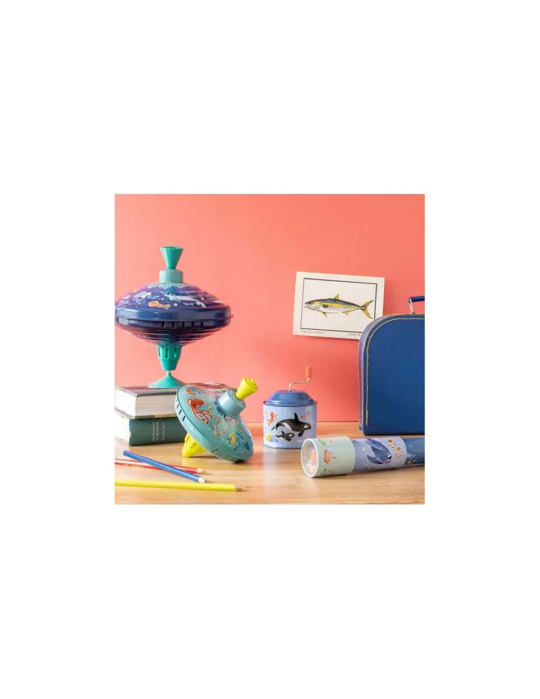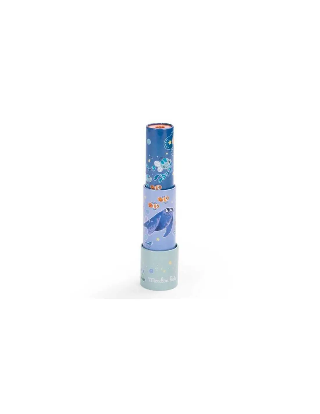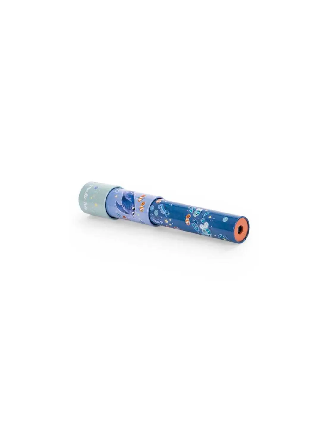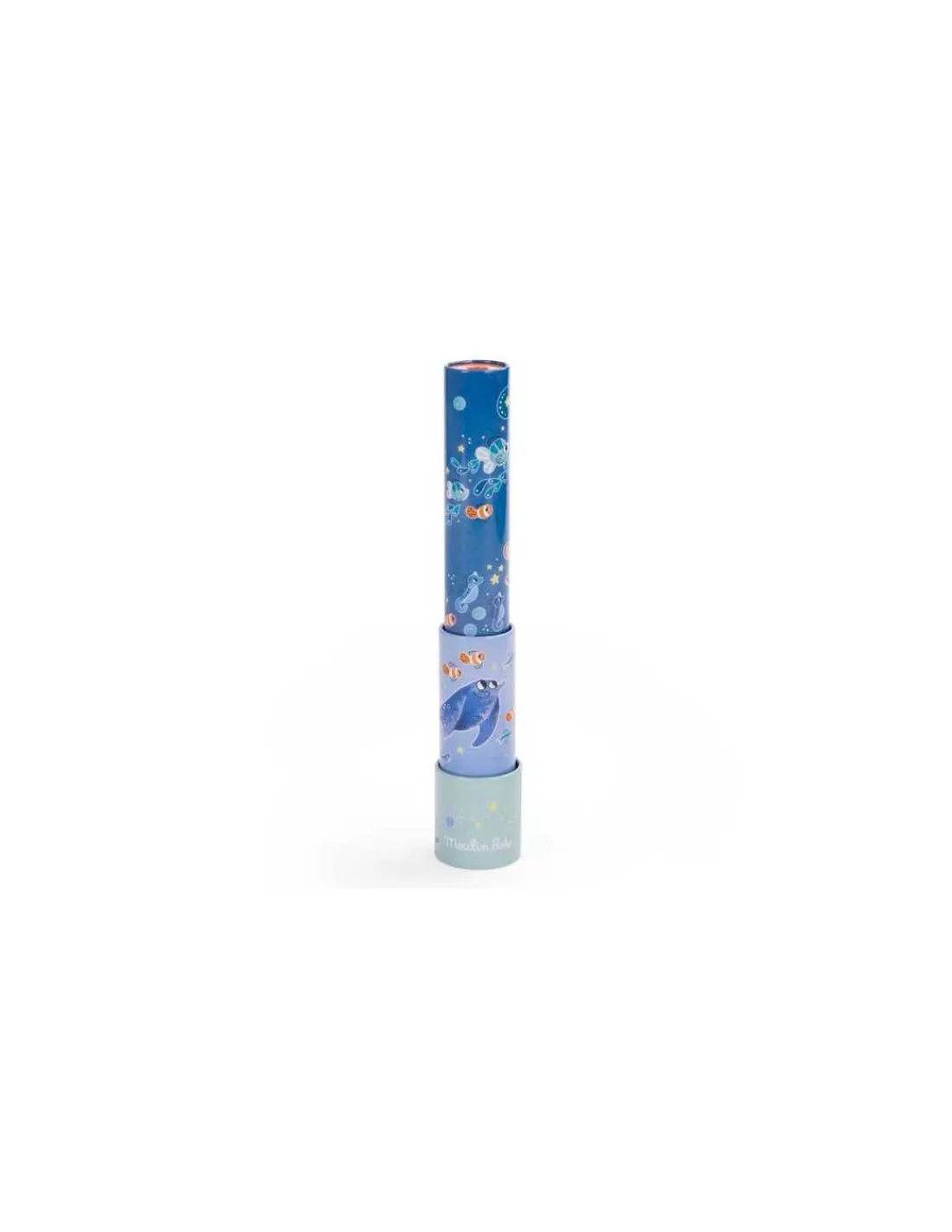 Découvrez le kaléidoscope longue-vue de la collection Les aventures de Paulie de Moulin Roty, un beau jouet en métal remis au goût du jour avec de belles illustrations sur le thème de la mer.