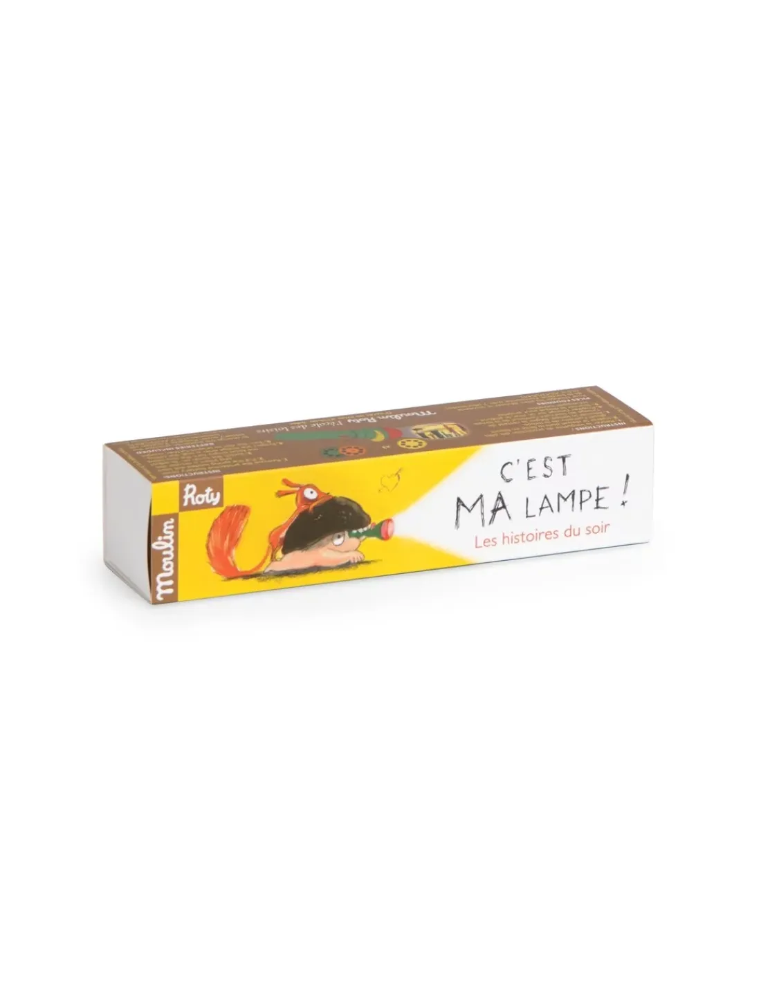 Lampe torche de poche où chacun des 3 disques projetés sur le mur raconte les aventures de l’écureuil, héros de l’école des loisirs, pour imaginer de belles histoires avant de s’endormir le soir. On éteint la lumière pour que la magie opère et c’est parti…
