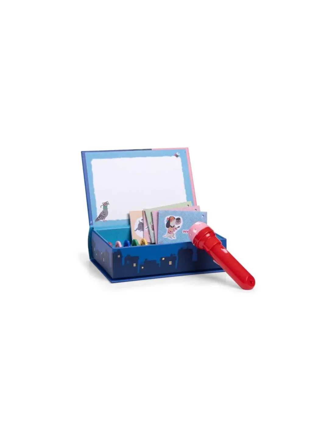 Un livre magique que l’on ouvre comme une boîte à trésors, qui renferme précieusement une lampe à projeter, 5 disques et 5 adorables invitations pour projeter de belles histoires sur son écran intégré. Grâce à ce joli cadeau, votre enfant pourra découvrir les aventures de ce chien qui sent la sardine et qui est couvert de puces.
