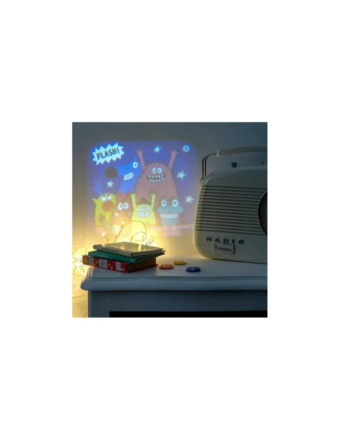 Un joli cadeau pour la chambre de votre enfant qui contient un projecteur et 4 disques contenant chacun 8 diapositives.