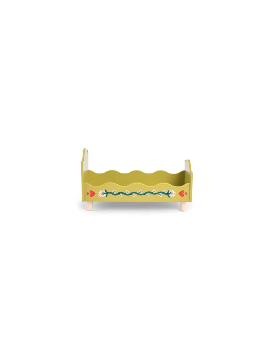 Le coffret comprend un lit en bois illustré avec édredon fleuri et oreiller rayé en tissu. Personnages vendus séparément.