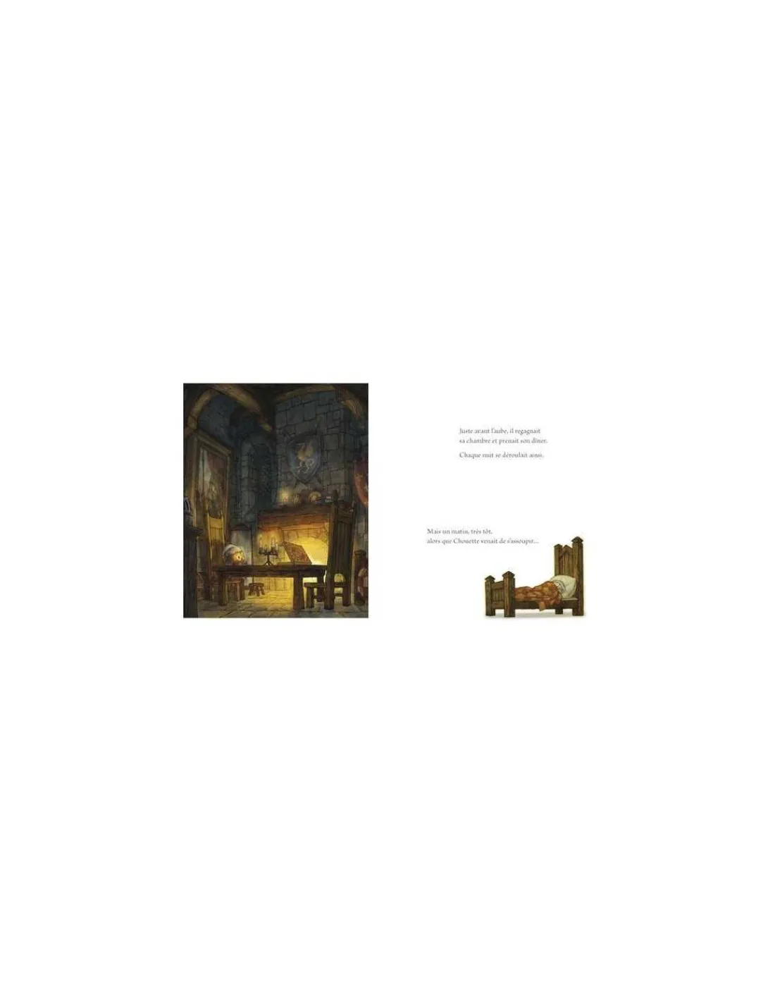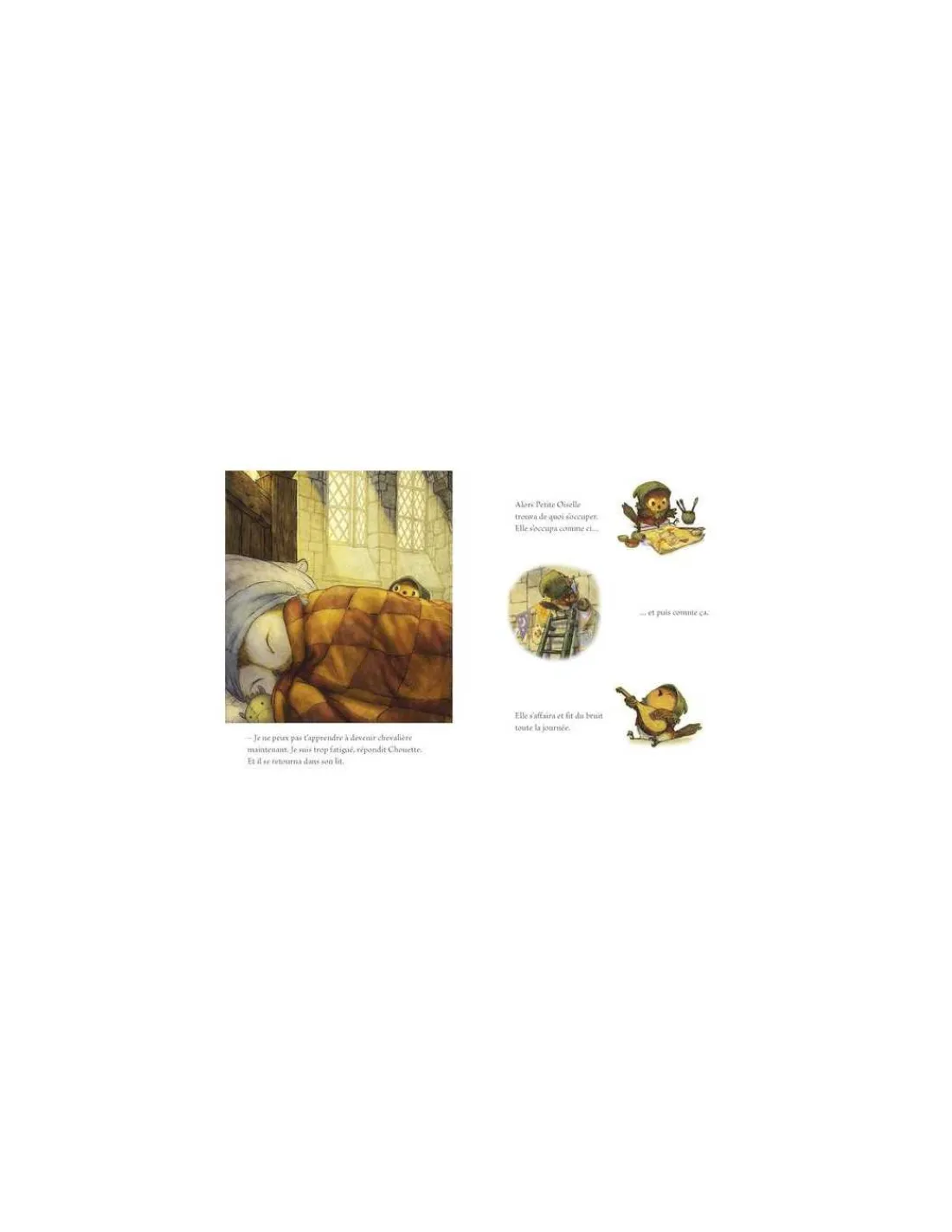 Chevalier Chouette est le capitaine de la garde de nuit. C’est quelqu’un de très important. Chaque nuit, il veille sur le château ; chaque matin, il profite d’un repos bien mérité. Sa vie est aussi réglée que du papier à musique. Jusqu’au jour où… quelque chose ou quelqu’un se met à faire tout un tintouin et chamboule son quotidien! Mais ne dit-on pas que l’on a souvent besoin d’un plus petit que soi ?