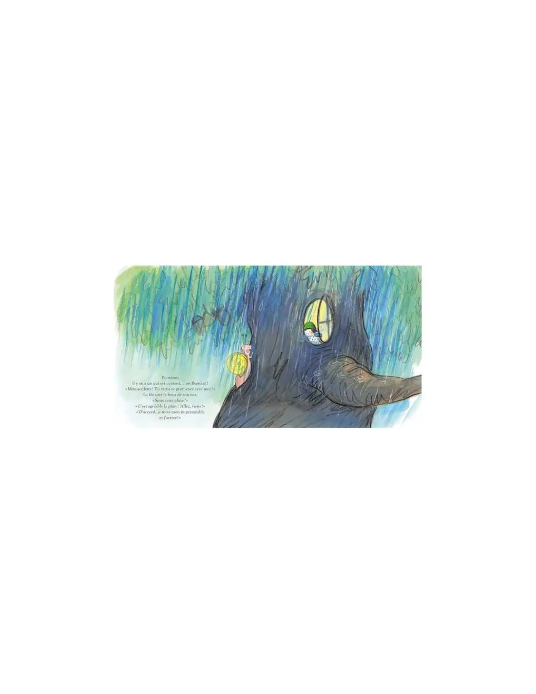 Il pleut depuis des jours sur le domaine. Chacun reste chez soi et s’ennuie. Minusculette se décide à sortir avec son ami Bernard l’escargot, qui, lui, aime la pluie. En passant devant la maison de Ninon la musaraigne, Bernard et Minusculette découvrent de drôles petits fantômes blancs suspendus à sa fenêtre. Mais sont-ils vraiment des fantômes ?