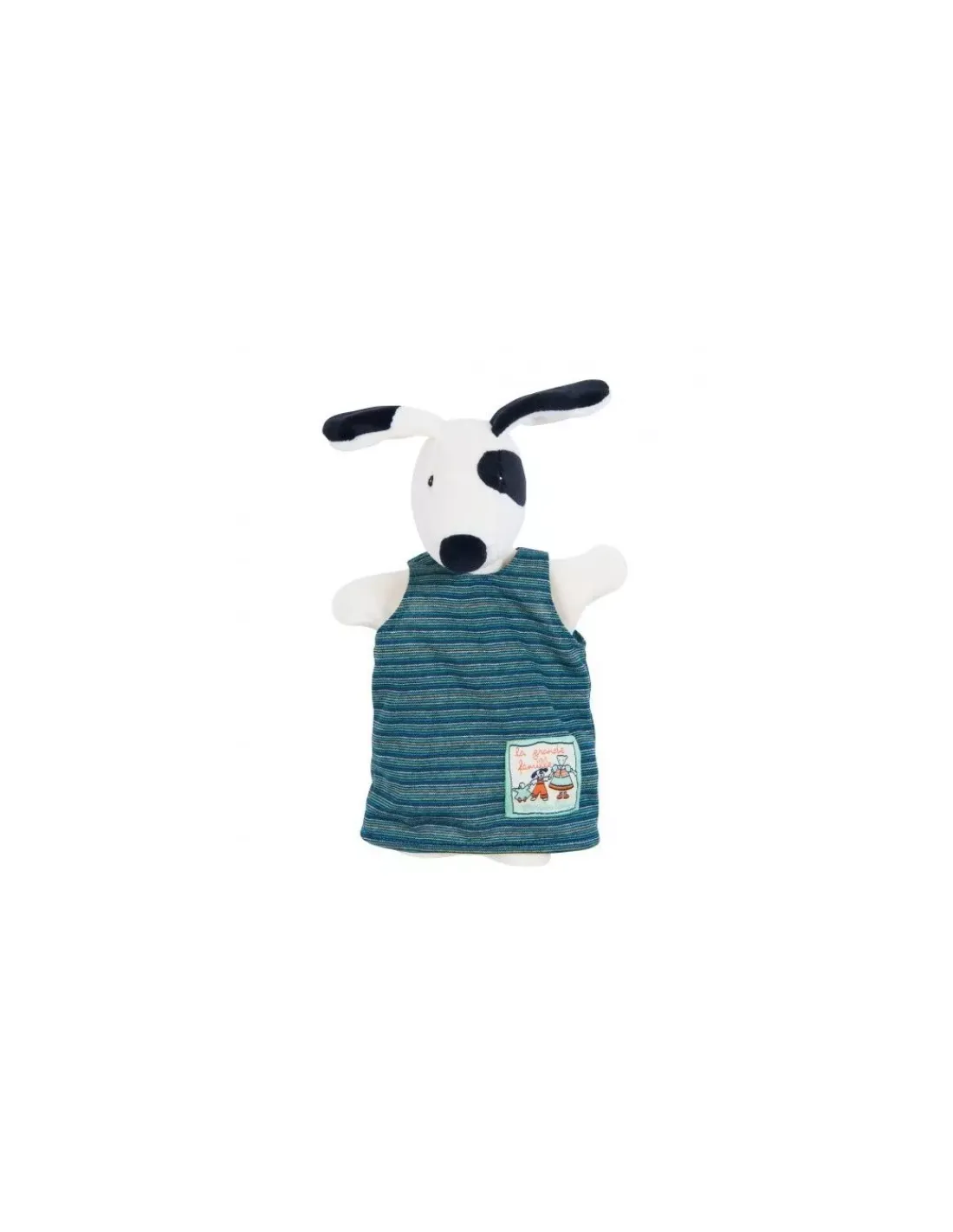 Découvrez la marionnette Julius le chien de la collection La grande famille de Moulin Roty, une marionnette reprenant le mignon personnage de la collection que vous allez pouvoir animer pour amuser votre bébé. Un chien reconnaissable avec sa tache autour de l’oeil à enfiler sur sa main pour raconter de jolies histoires.