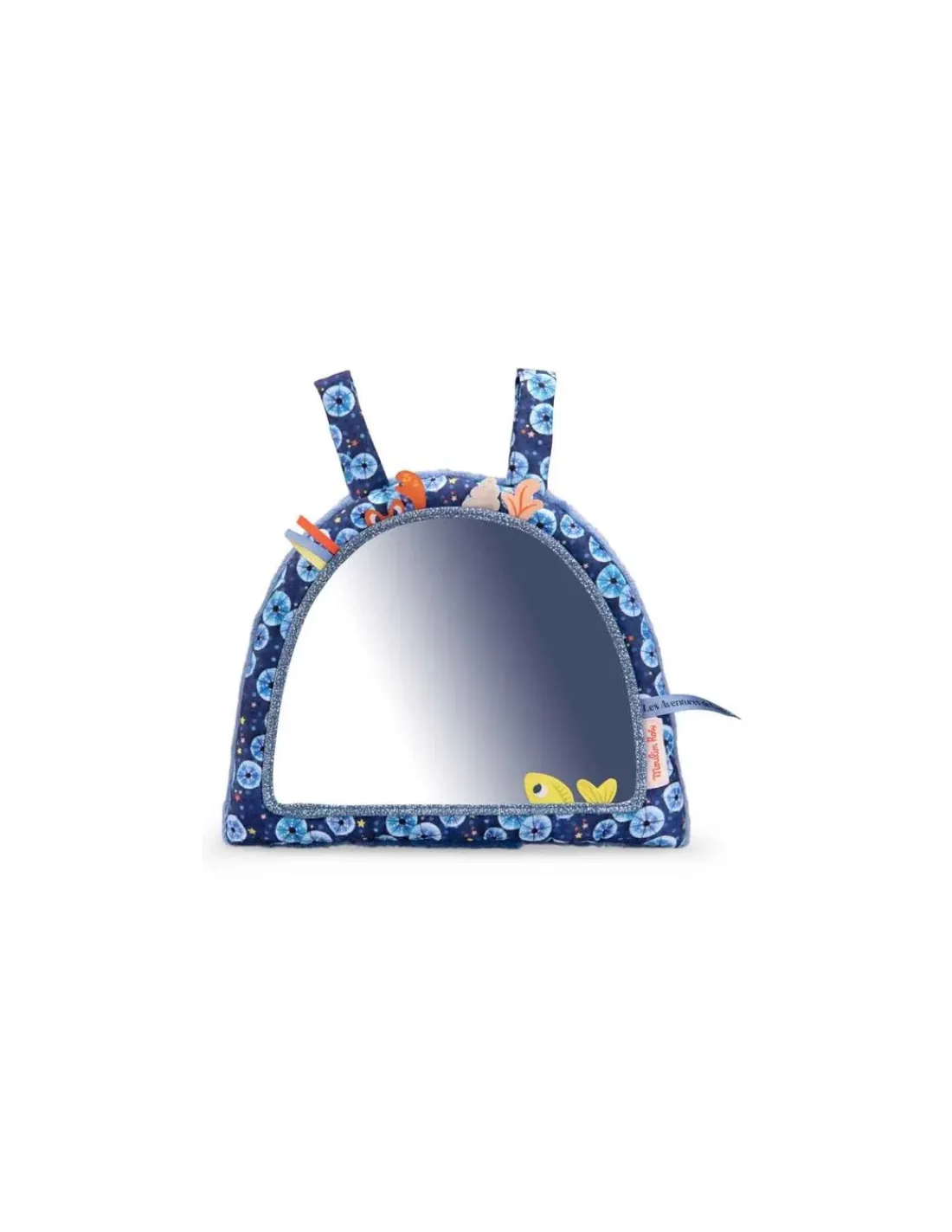 Coucou, mais qui voilà…? Pour apprendre à se reconnaître ou simplement jouer avec les reflets de lumière, ce joli miroir est entouré de petits compagnons marins et d’accessoires rigolos pour jouer sur le ventre ou assis. Un jouet sensoriel en tissu à poser ou à accrocher facilement au parc pour que votre enfant puisse découvrir son reflet.