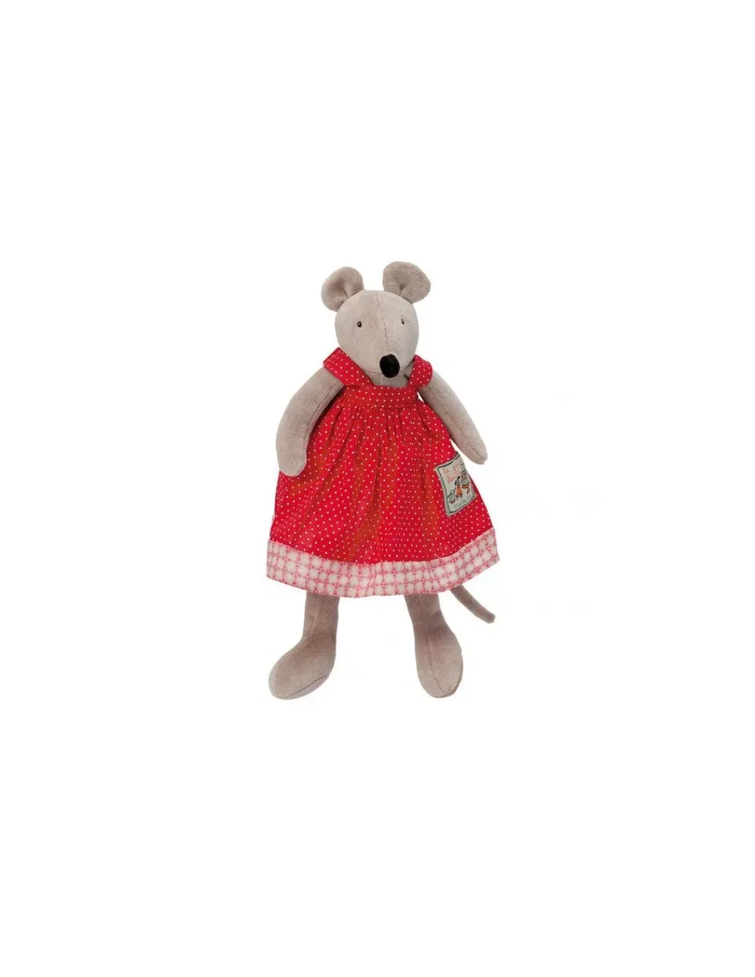 Découvrez Nini la souris de la collection La grande famille de Moulin Roty, un grand doudou souris de 30 cm que bébé pourra attraper par les bras ou les jambes. Nini la souris est toute pimpante dans sa belle robe et prête pour les câlins.