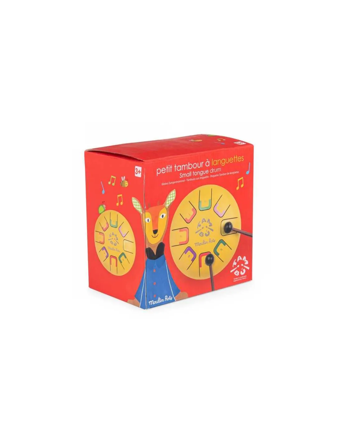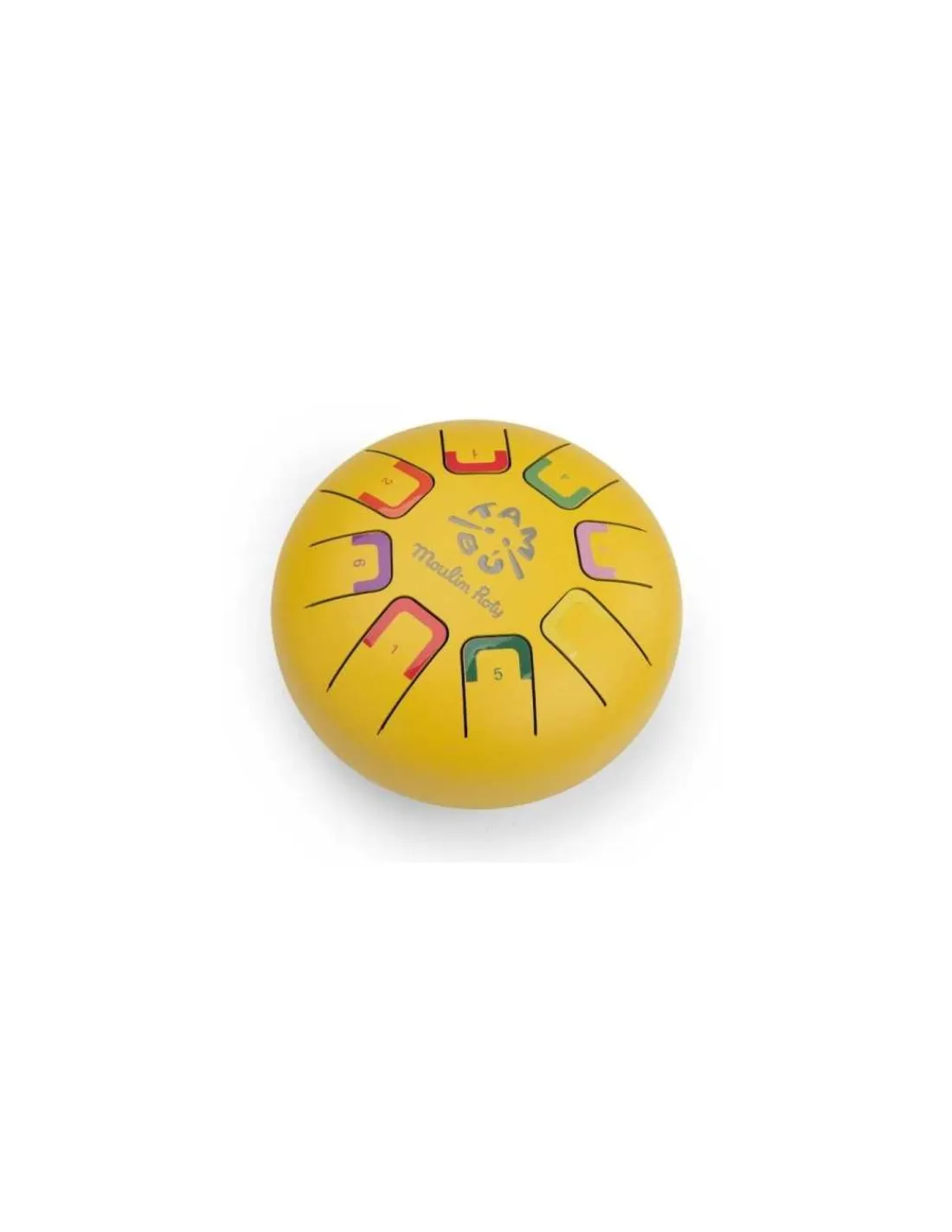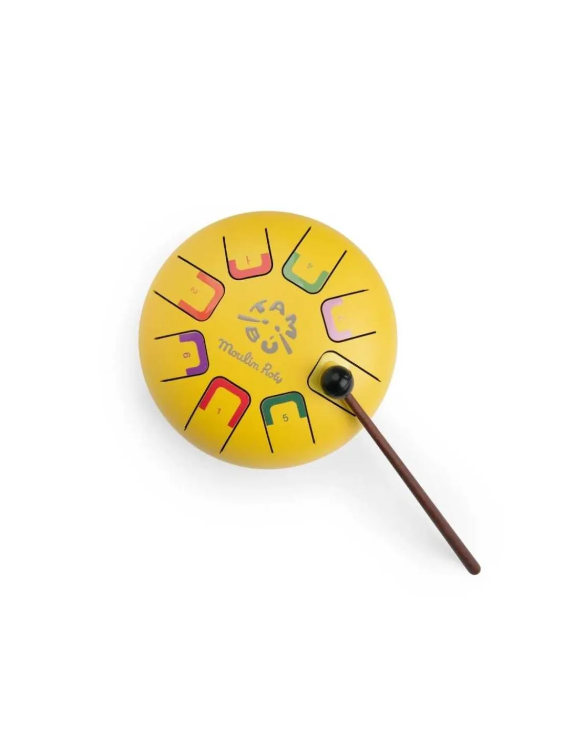 Découvrez le petit tambour à languettes de la collection Les Popipop de Moulin Roty, un magnifique instrument de musique de couleur jaune conçu pour les enfants à partir de 3 ans.