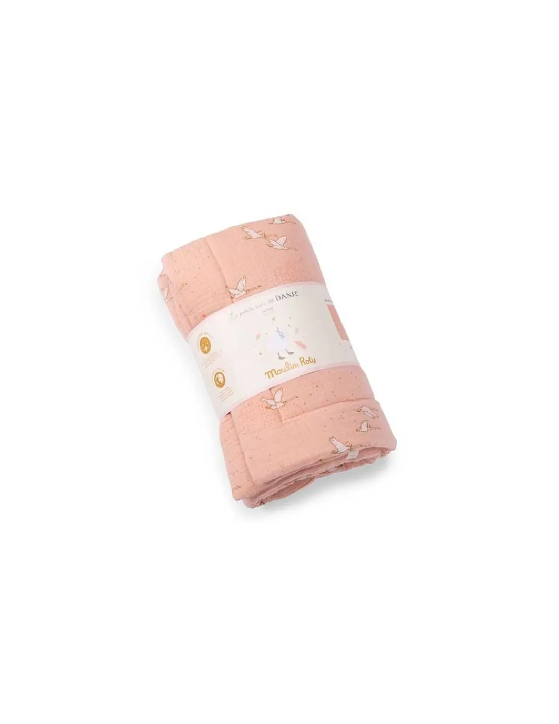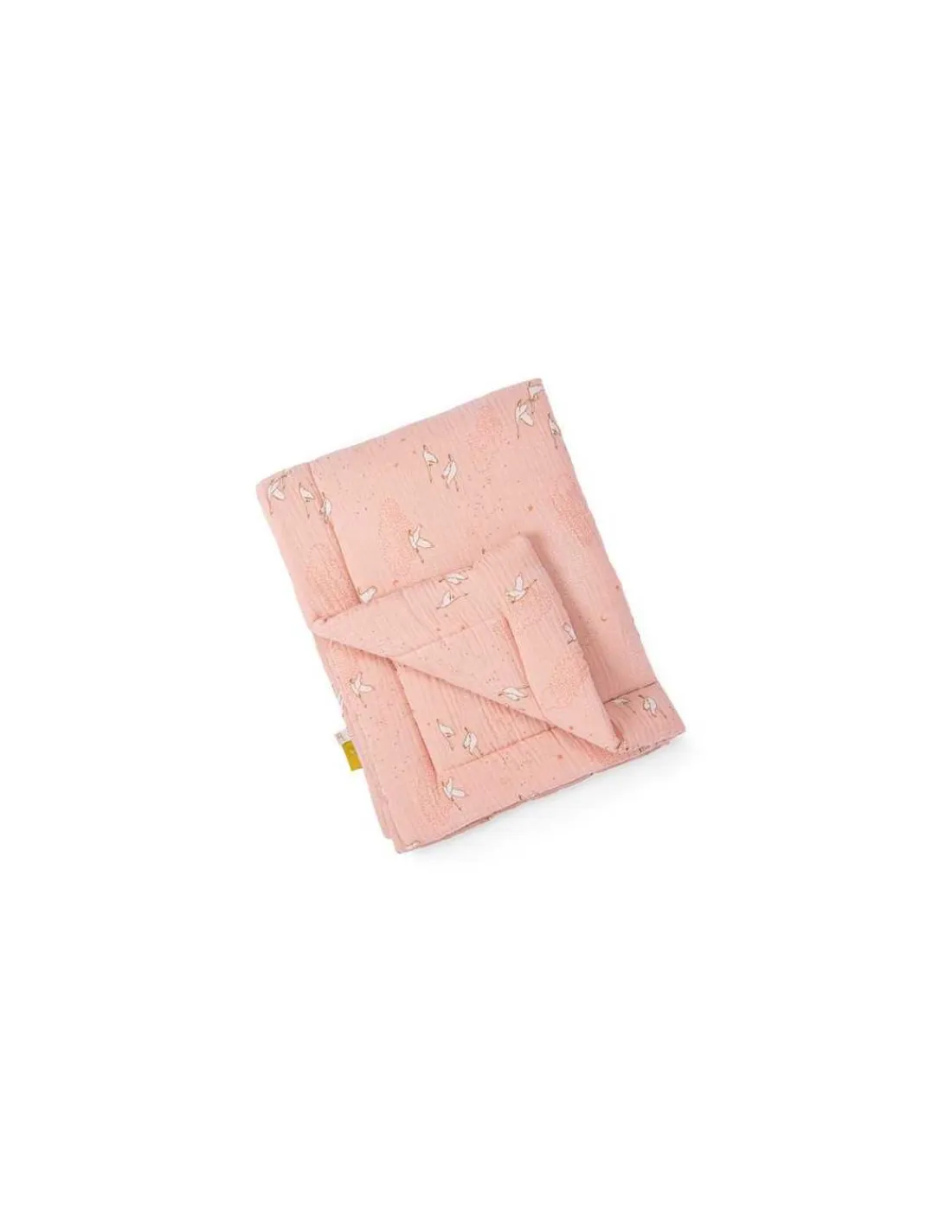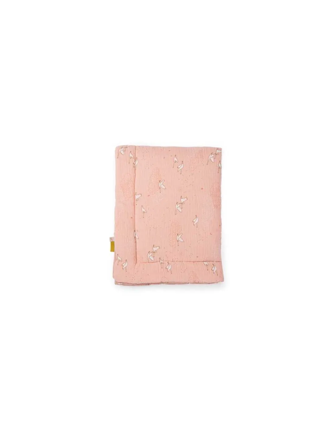 Plaid rose à l’imprimé cygnes, délicat et poétique (90 x 69cm) en lange certifié OEKO-TEX®. Doux et moelleux, il accompagnera bébé pour le tenir au chaud, lors de vos sorties ou tout simplement à la maison !