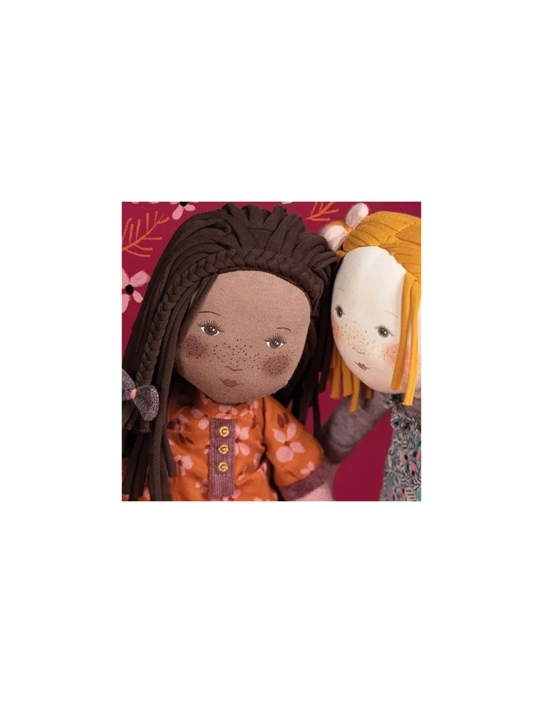 Découvrez aussi ses copines Prunelle, Violette, Iris, Vanille et Anémone. Les visages des Rosalies ont été dessinés à l’aquarelle par la créatrice Cécile Blindermann, puis scannés et imprimés, directement sur le tissu. Cette technique permet un rendu unique, particulièrement tendre et affectueux, pour des poupées aux visages très expressifs.
