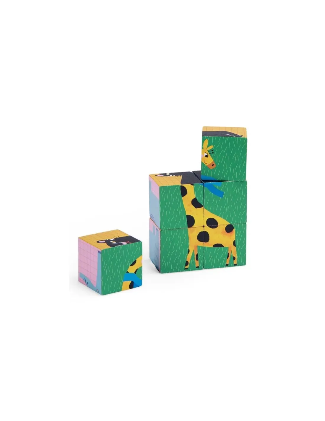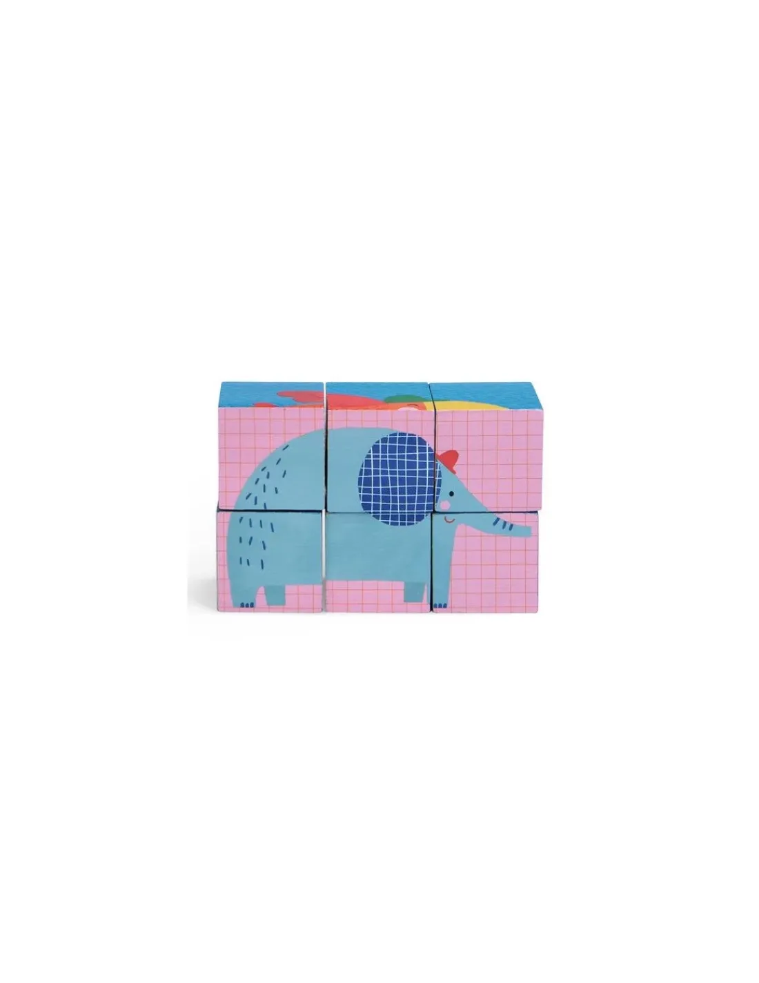 Découvrez le puzzle 6 cubes de la collection Les toupitis de Moulin Roty, des cubes en bois faciles à manier pour les enfants à partir de 18 mois.