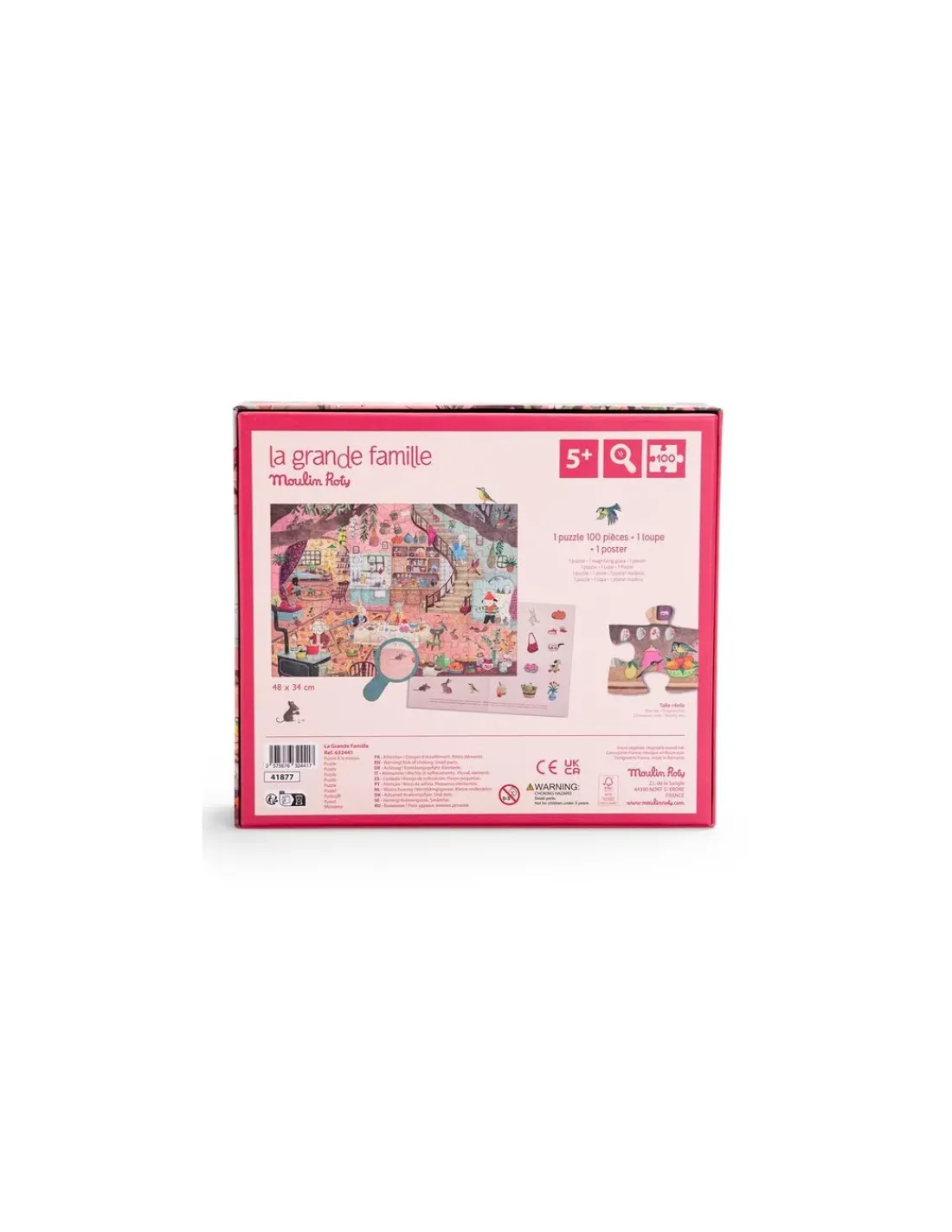Découvrez le puzzle À la maison de la collection La Grande Famille de Moulin Roty, un puzzle d’observation composé de 100 pièces représentant une scène du quotidien des personnages de cette belle famille. Une belle idée de cadeau à offrir aux filles et aux garçons dès 5 ans.
