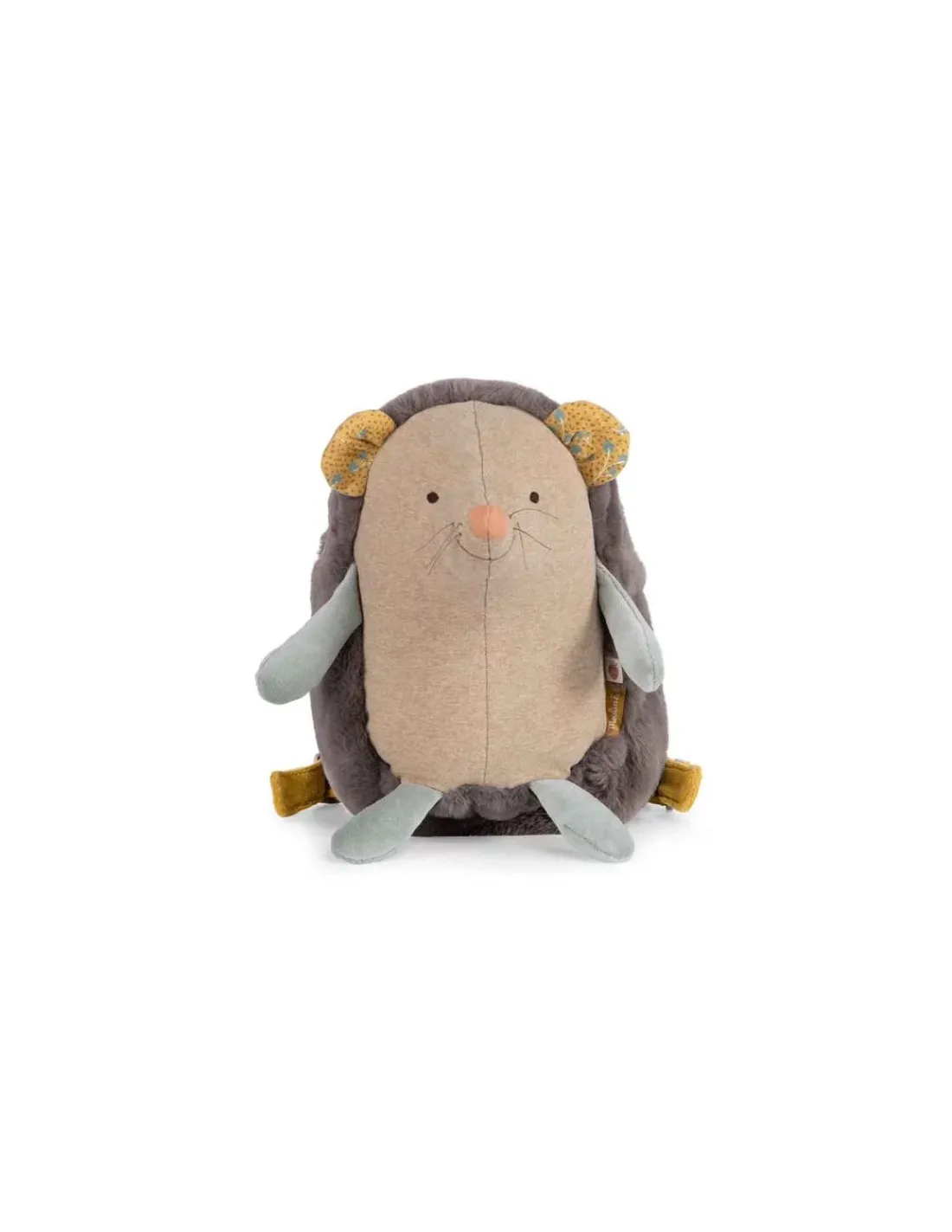 Découvrez le sac à dos hérisson de la collection Trois Petits Lapins de Moulin Roty, un sac en tissu tout doux qui accompagnera votre bébé en balade, chez la nounou ou à la crèche.