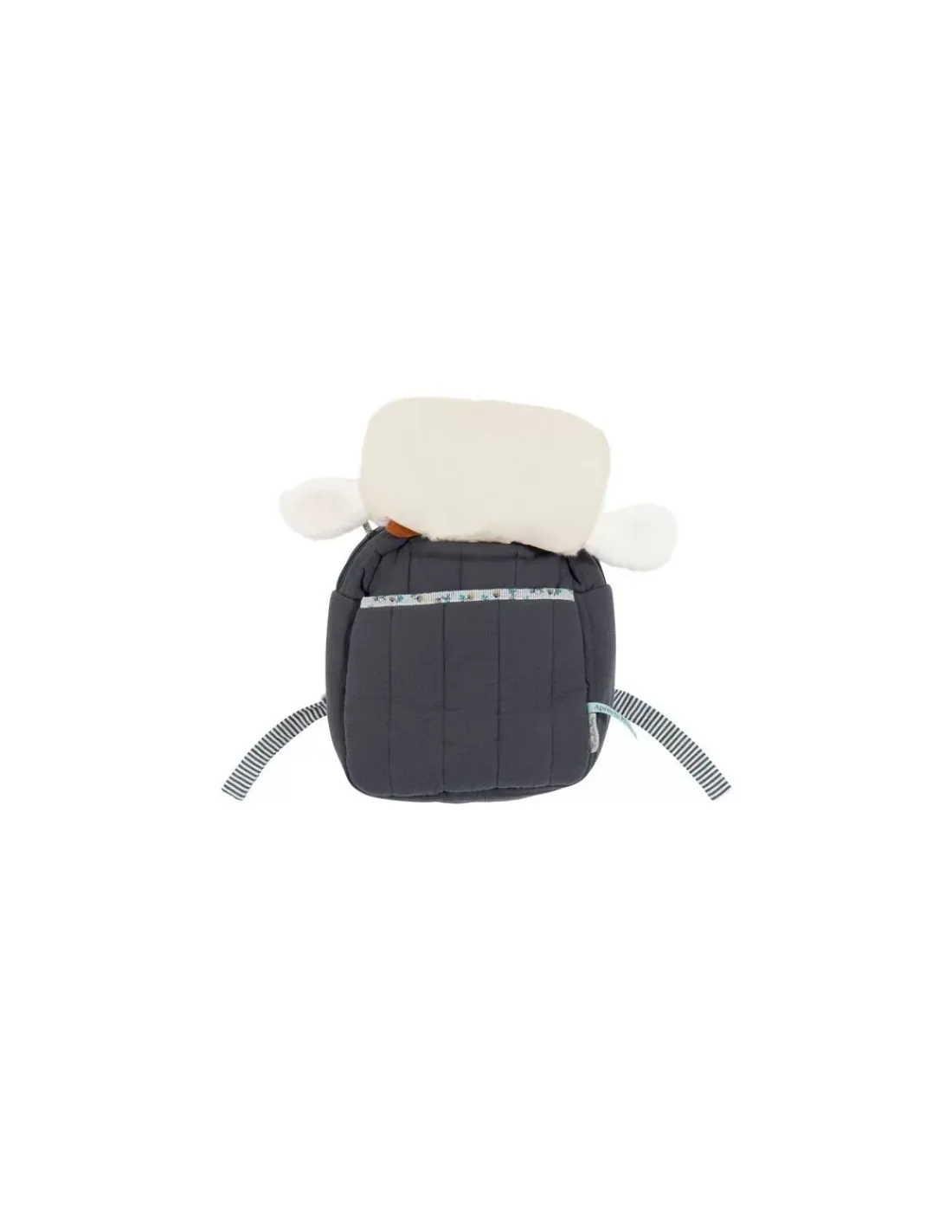 Découvrez le sac à dos nuage mouton de la collection Après la pluie de Moulin Roty, un sac en lange de coton biologique et tissu chambray, avec son minois de mouton brodé et deux oreilles toutes douces en fourrure.