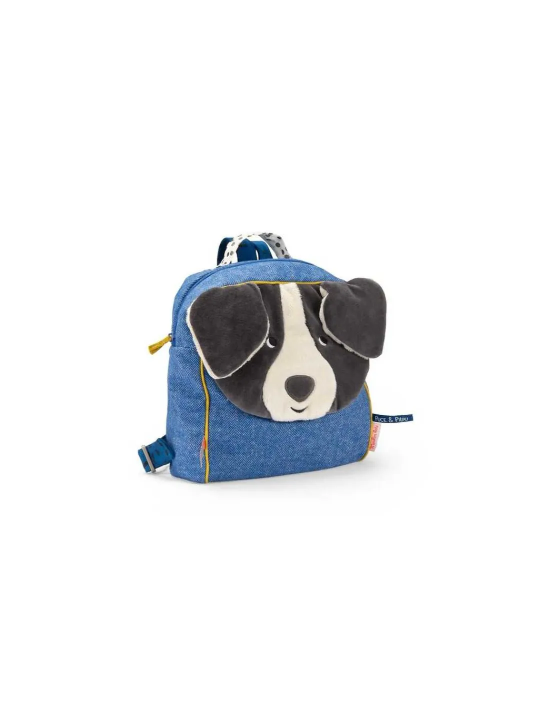 Découvrez le Sac à dos Puce bleu de la collection Puce & Pilou de Moulin Roty, un sac en tissu tout doux qui accompagnera votre bébé en balade, chez la nounou ou à la crèche.