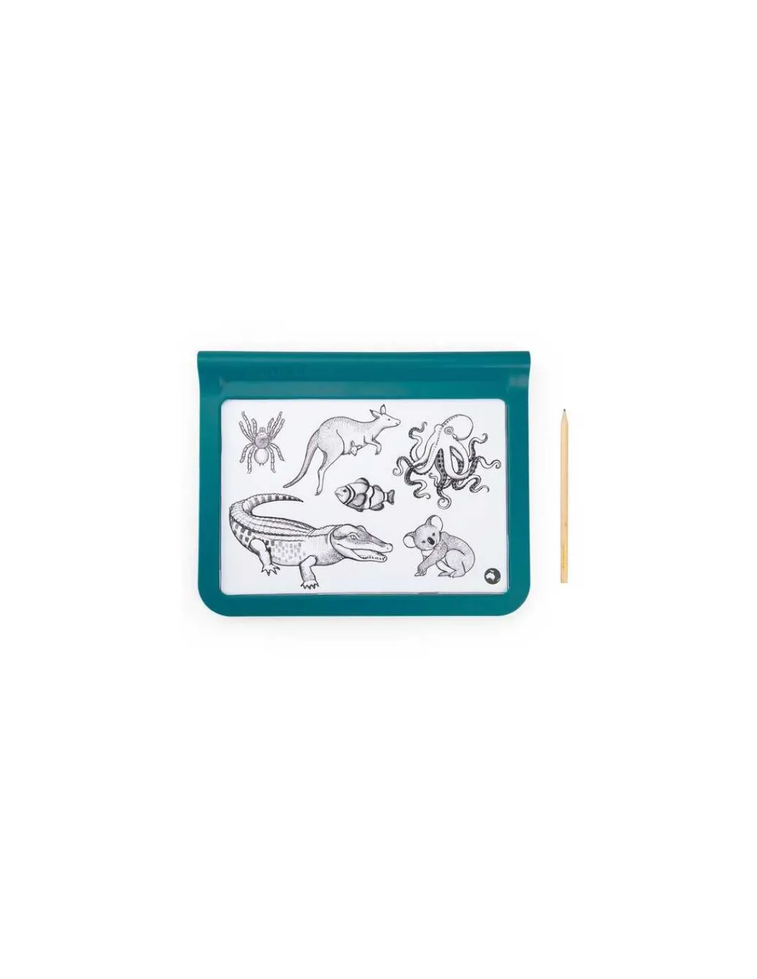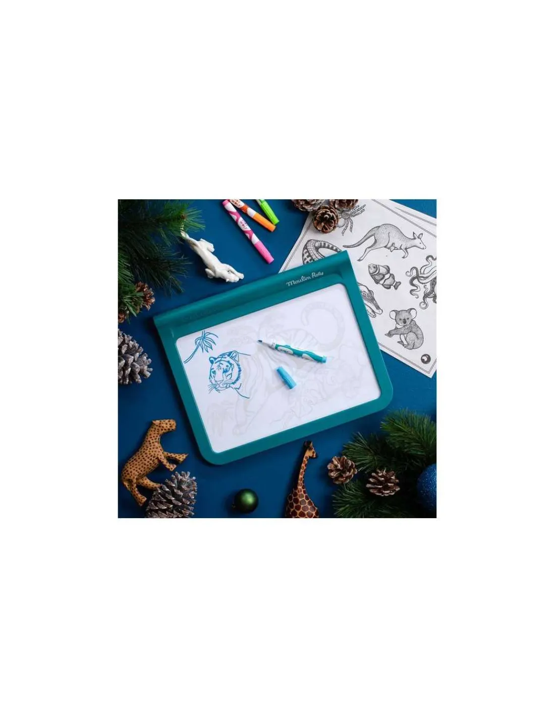 Grâce à cette tablette réversible, votre enfant pourra reproduire fidèlement les animaux de la collection Tout autour du monde. La face avant permet à l’enfant de reproduire un dessin, alors que la face arrière propose un tableau noir en plexiglass avec un effet néon, qui illumine les couleurs du dessin pendant la nuit.