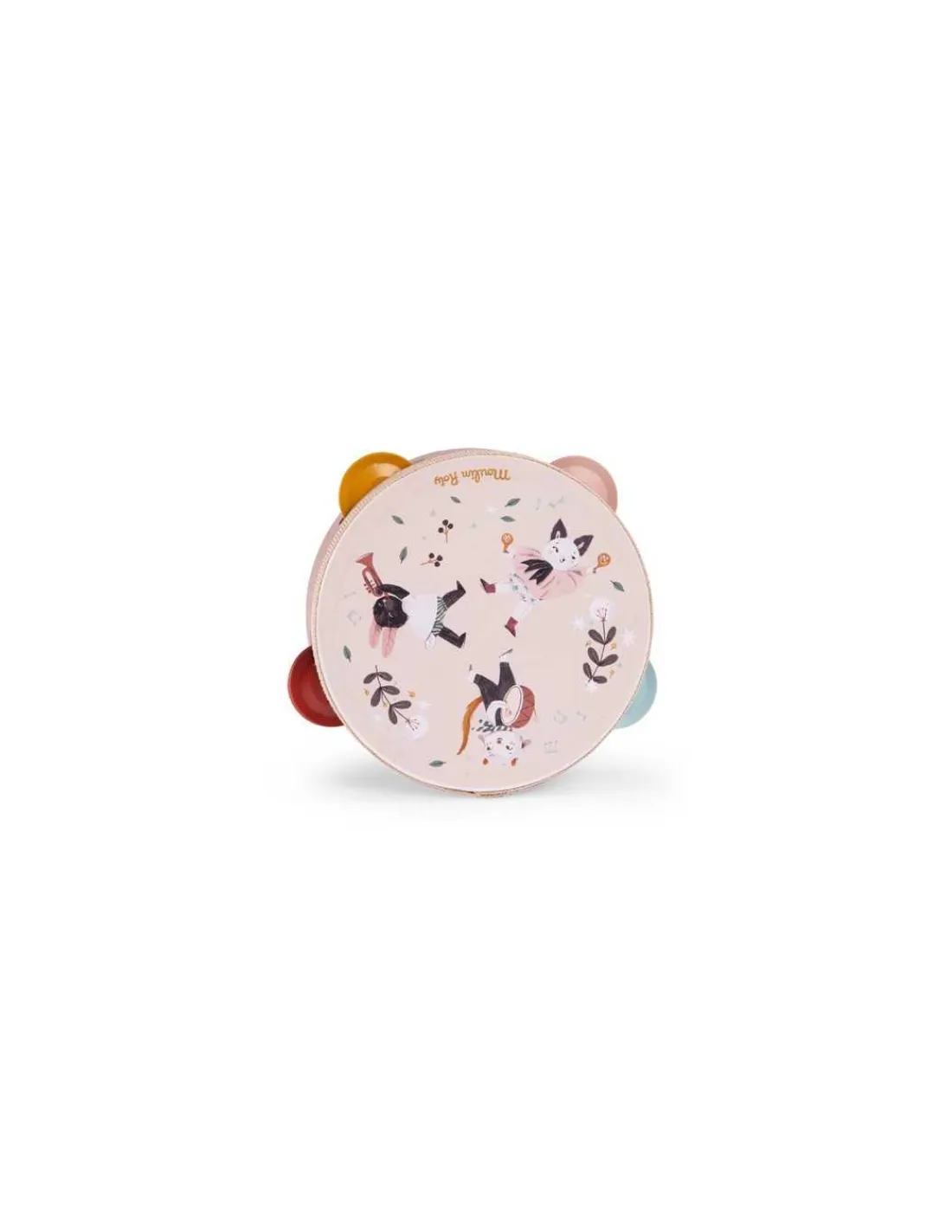 Découvrez le tambourin de la collection Après la pluie de Moulin Roty, un instrument de musique en bois coloré pour amuser les enfants dès 2 ans. Un jouet qui tient facilement dans la main pour s’éveiller en musique et qui reprend les illustrations de la collection aux couleurs poétiques.