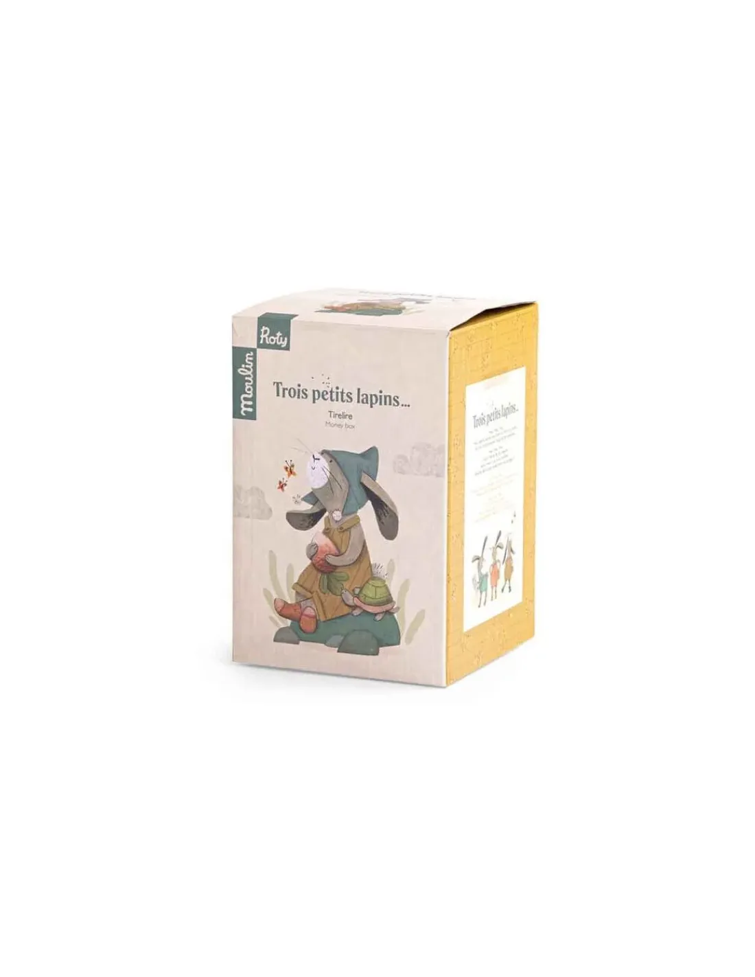 Découvrez la tirelire lapin de la collection Trois Petits Lapins de Moulin Roty, une jolie tirelire en résine en forme de lapin pour les enfants.