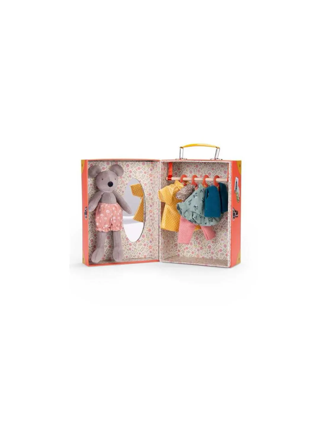 Découvrez la valise La petite armoire Nini de la collection La Grande Famille de Moulin Roty, une magnifique valisette dressing avec une poupée peluche et des vêtements pour l’habiller dès 3 ans.