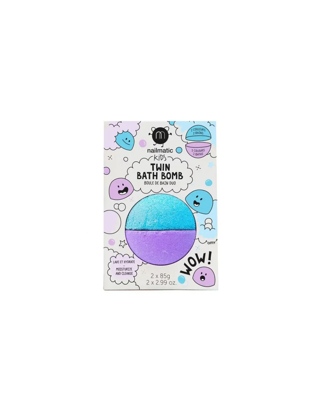 Découvrez la boule de bain duo bleu et violet de Nailmatic. Une boule de bain avec 2 couleurs pour 2 bains.