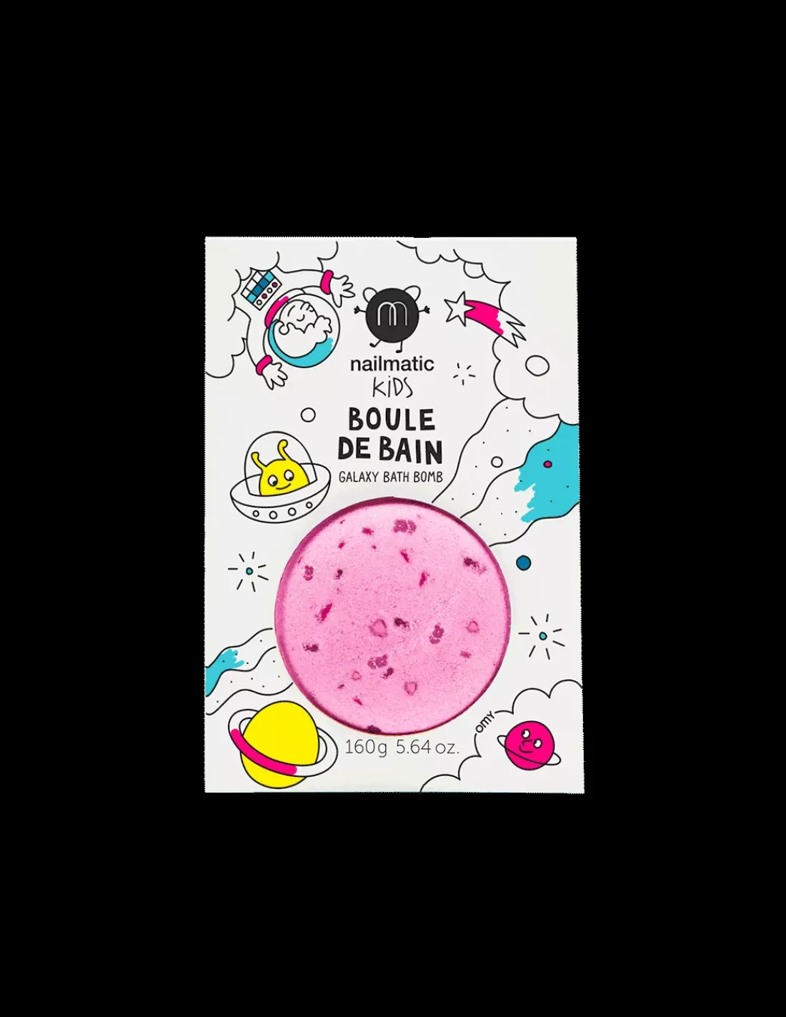 Découvrez la boule de bain rose violet Cosmic de Nailmatic. Une boule de bain rose avec des points violet, une boule effervescente qui va colorer l’eau du bain des enfants et diffuser un parfum myrtille.