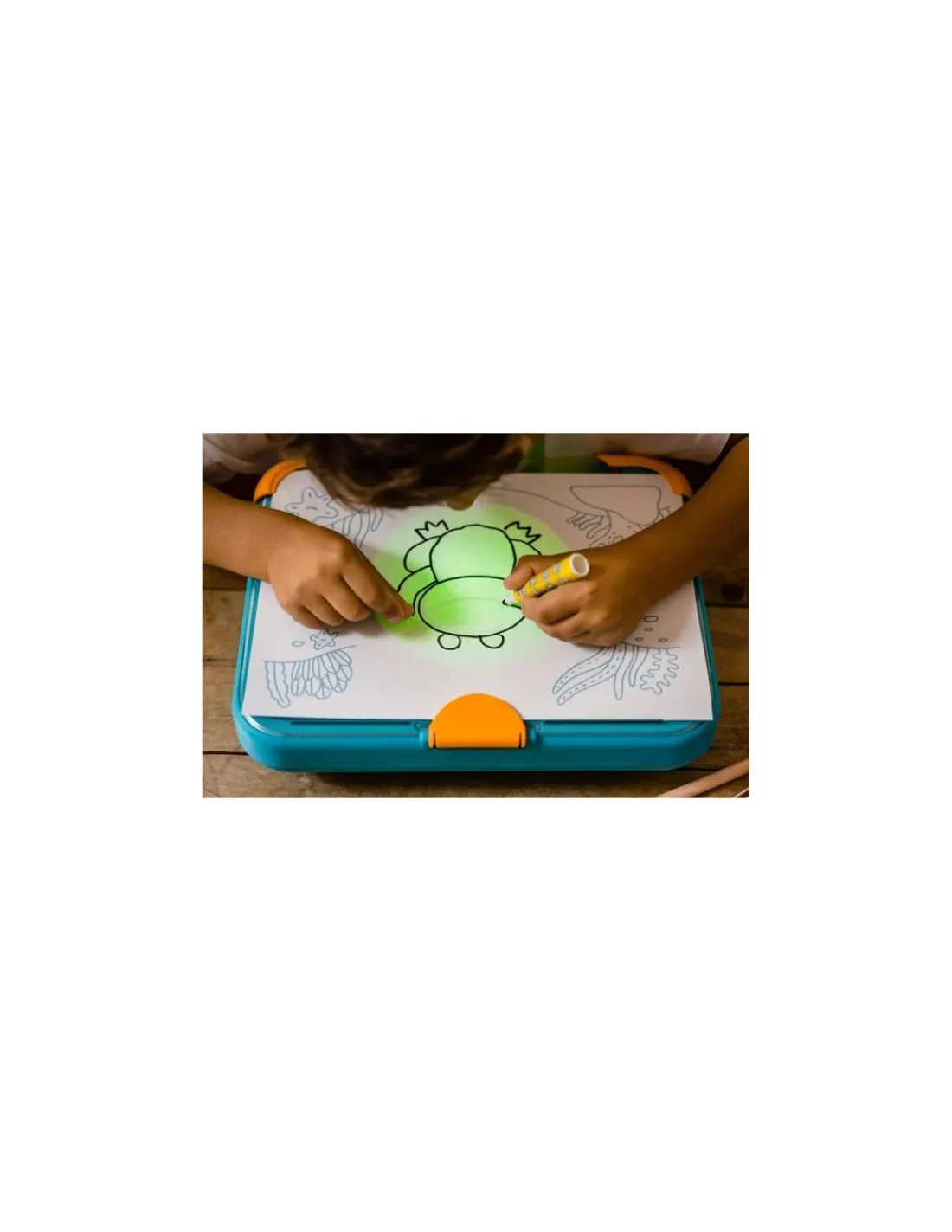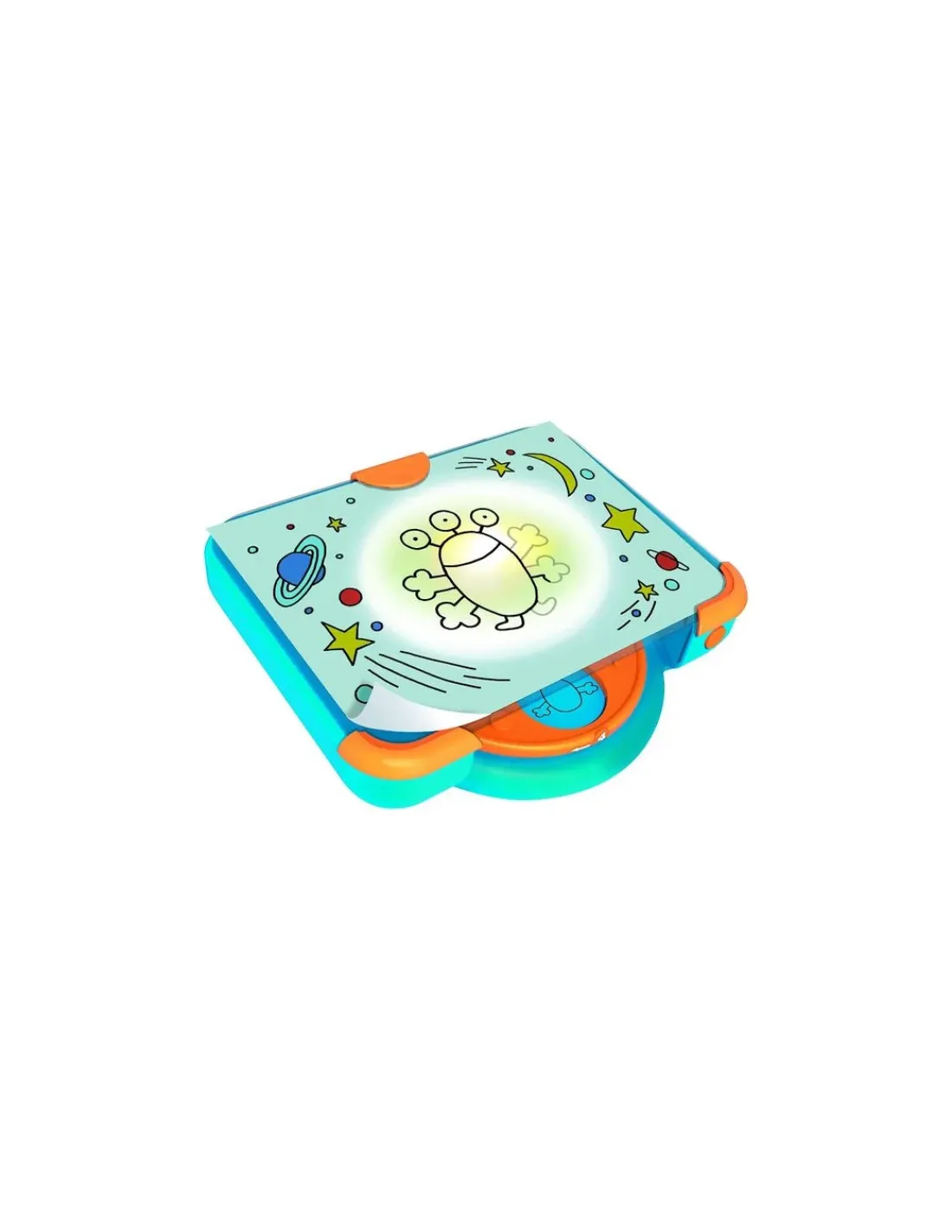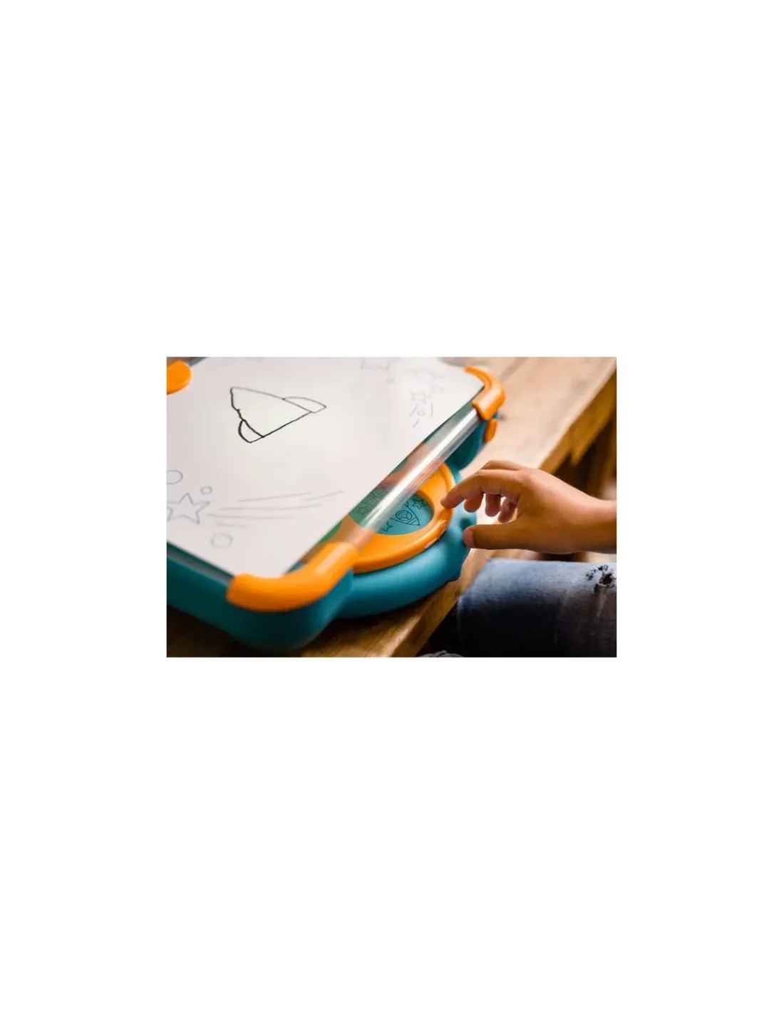 Dessinéo guide l’enfant dans ses premiers pas d’artiste. Il choisit un modèle, le place sur la roue, pose une feuille de papier sur le pupitre lumineux et dessine pas à pas en suivants les traits projetés.Personnages, véhicules, animaux… seront désormais très facile à dessiner.