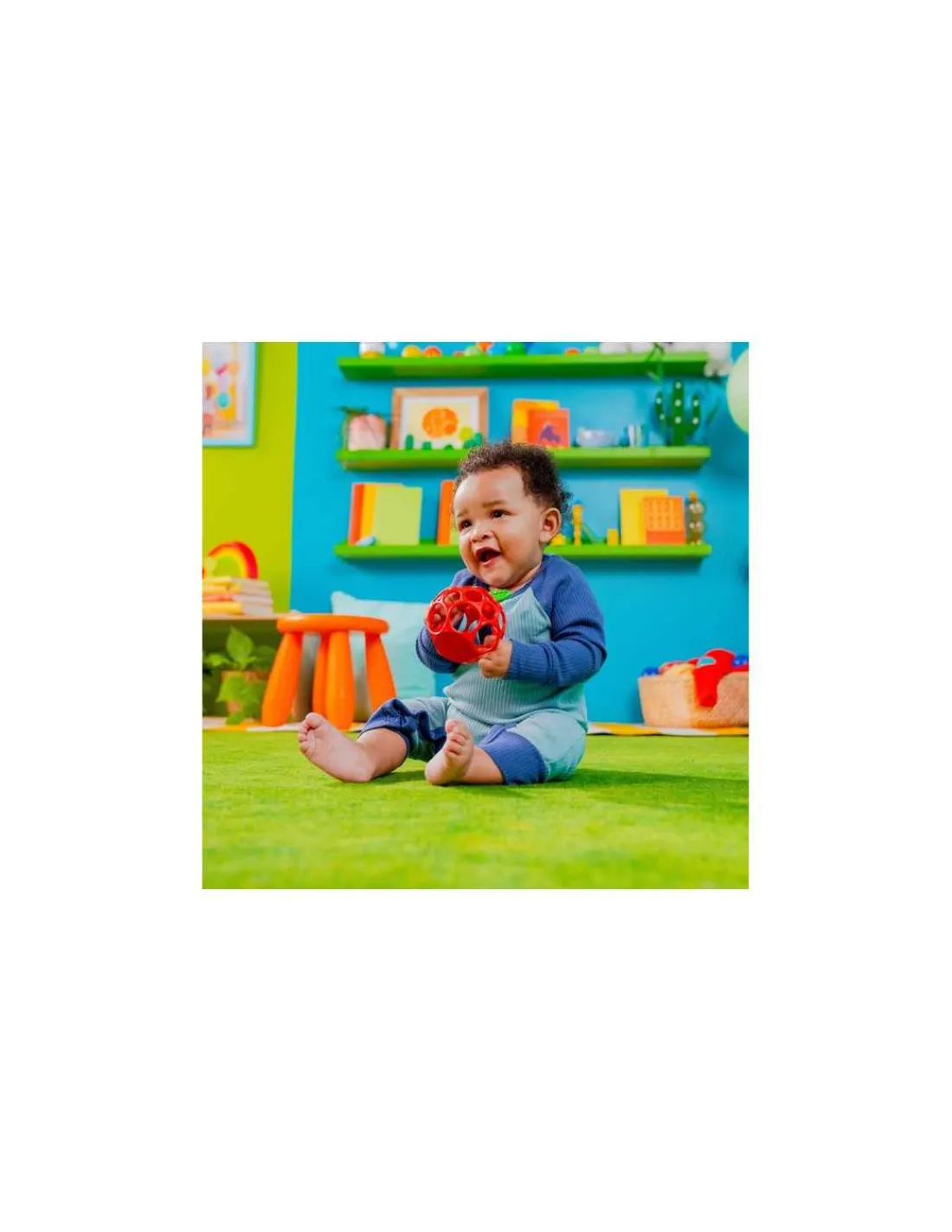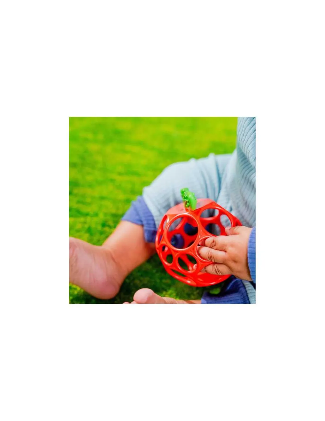 Découvrez la balle d’éveil Pomme de Oball, un jouet d’éveil souple en forme de balle conçu pour stimuler les sens et apaiser les gencives des bébés dès la naissance.