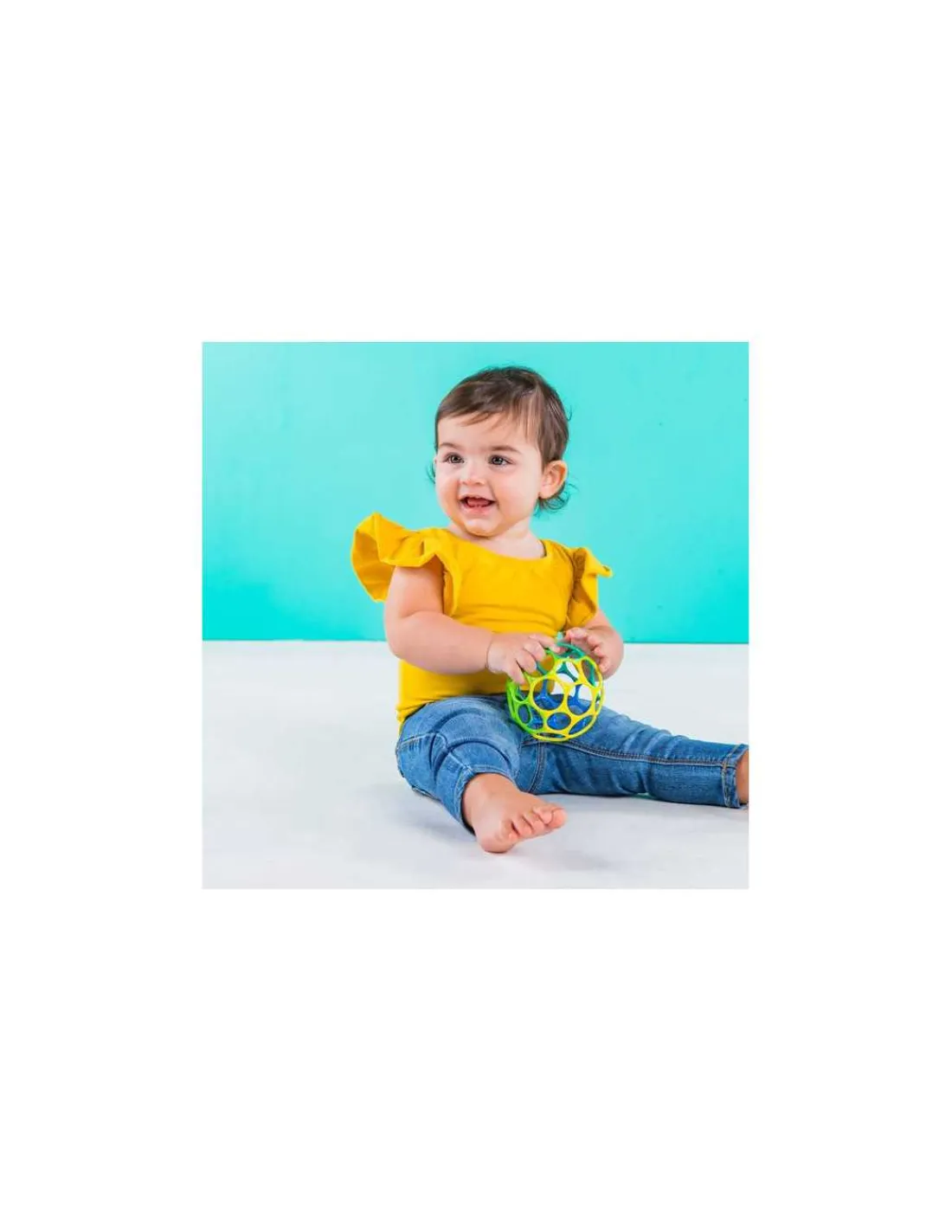 Découvrez la balle souple bleu vert de Oball, un jouet d’éveil souple en forme de balle conçu pour éveiller les bébés dès la naissance.