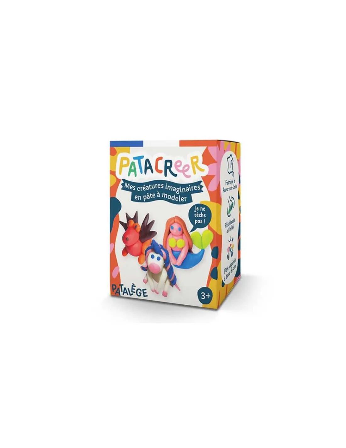 Découvrez le kit Mes créatures imaginaires en Pâte à Modeler de la gamme Patalège de Patacréer, un coffret de loisir créatif fabriqué en France comprenant 12 sticks de pâte à modeler réutilisable, permettant aux enfants dès 3 ans de réaliser une licorne, une sirène et un dragon.
