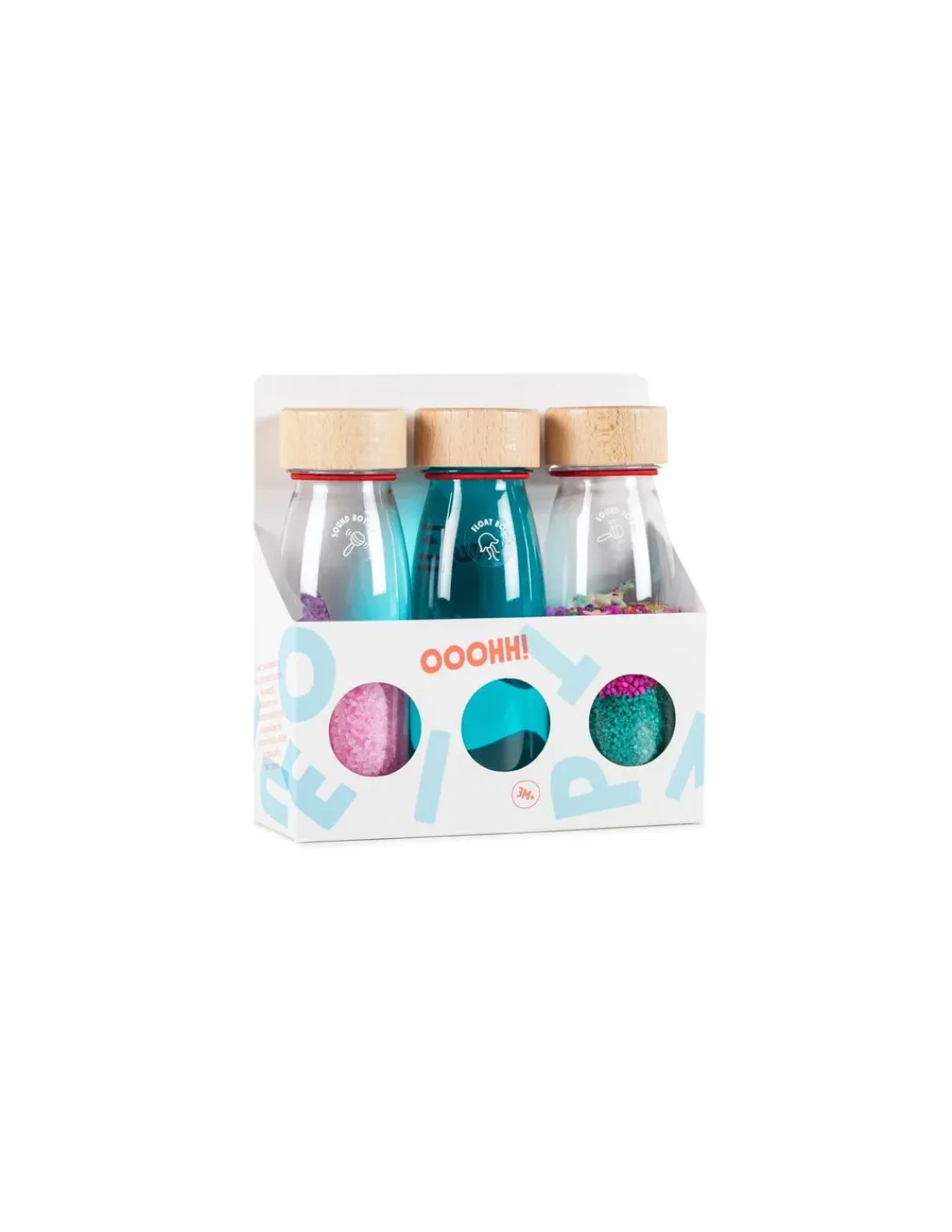 Découvrez les 3 bouteilles sensorielles Fantasy de Petit Boum, une activité d’éveil avec 3 bouteilles pour regarder, agiter et écouter, pour s’éveiller à partir de 3 mois. Une bouteille flottante turquoise, une bouteille sonore sirène et une bouteille sonore licorne. Des bouteilles pour stimuler l’ouïe, la vue et le toucher. Votre enfant va s’amuser à observer les éléments, agiter les bouteilles et découvrir des sons, empiler les bouteilles, les faire rouler…