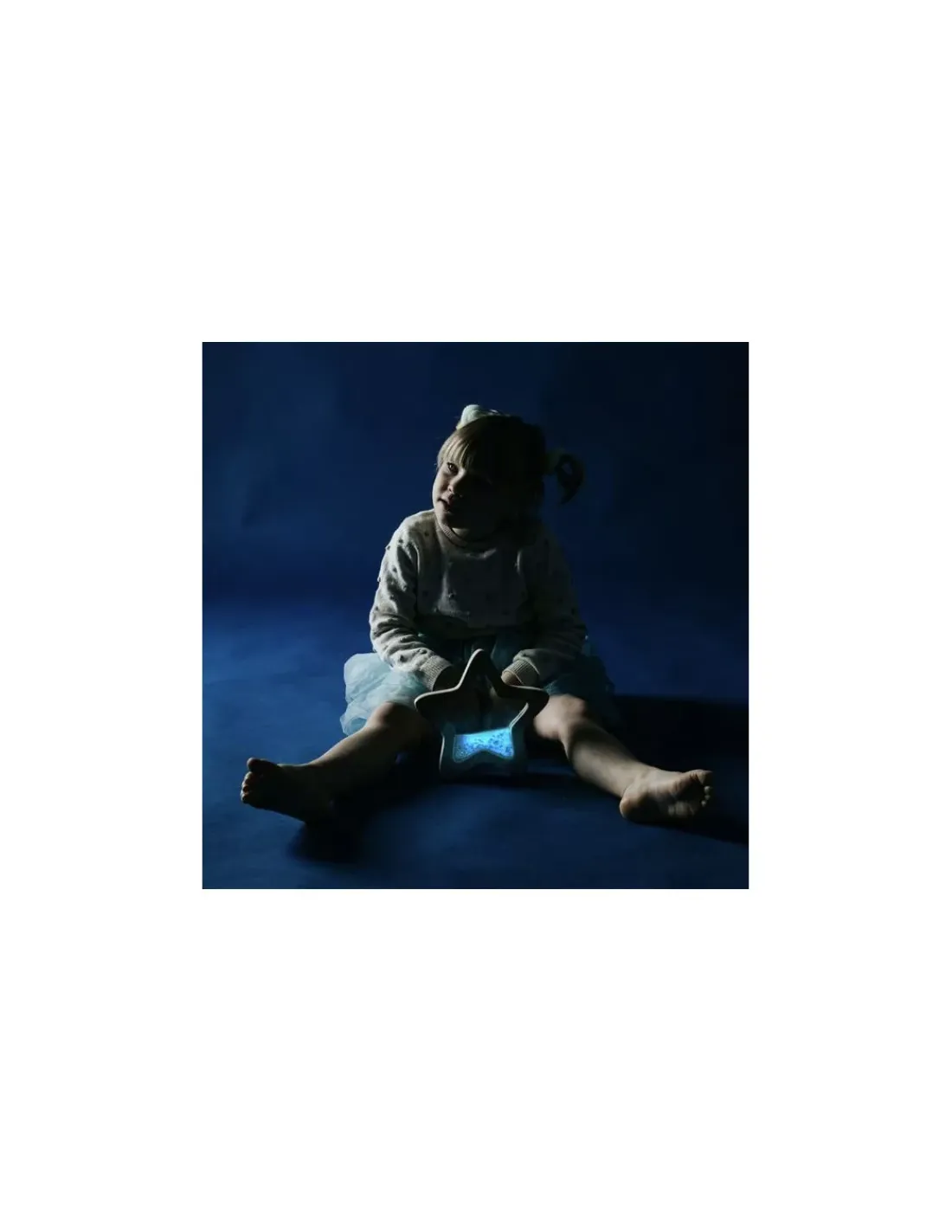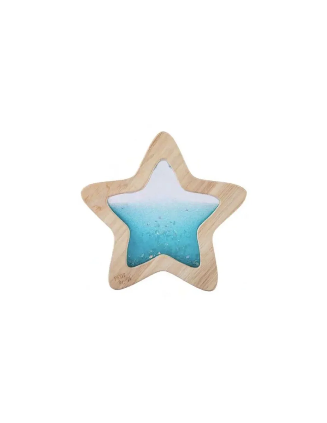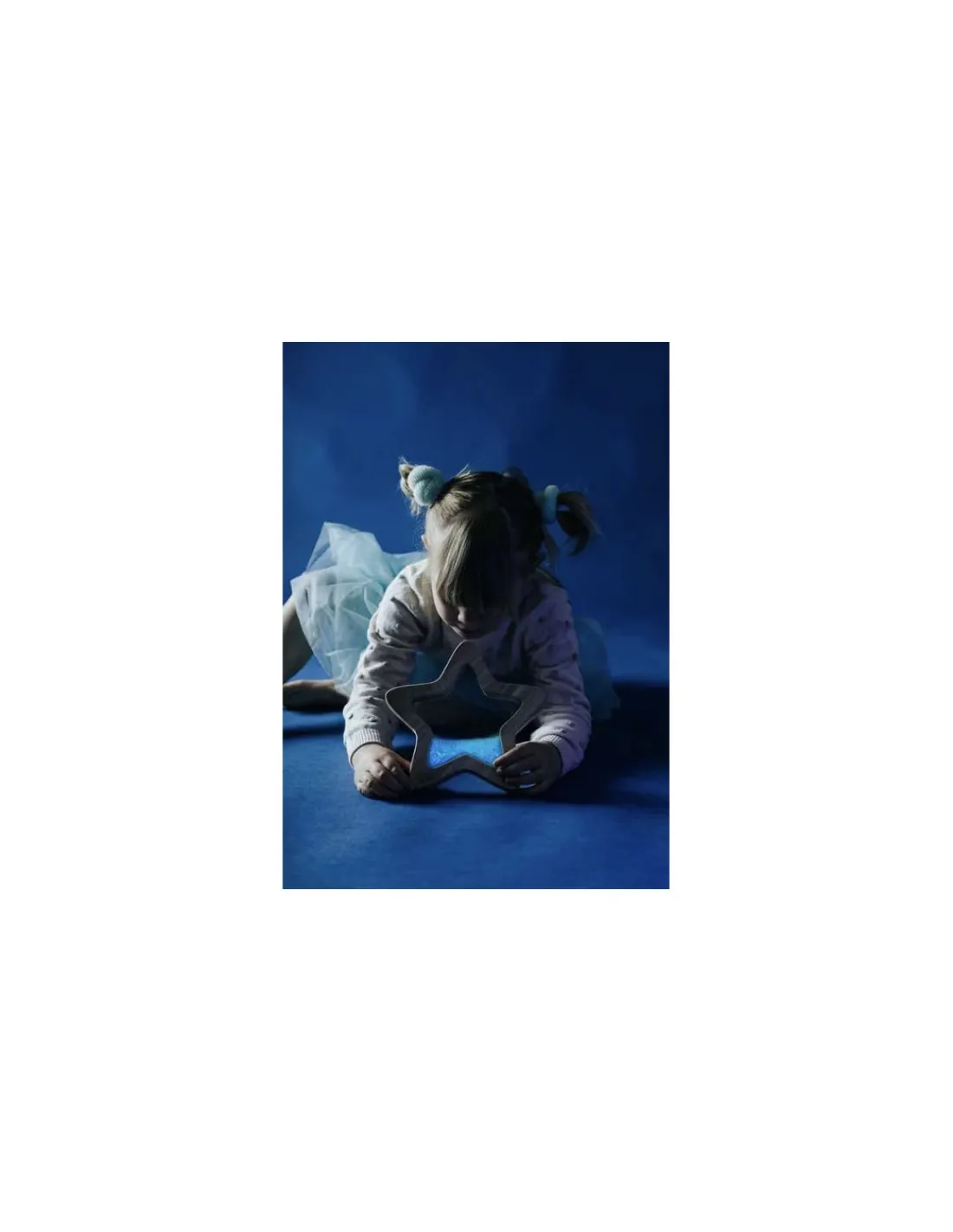 Découvrez l’étoile sensorielle Orionis de Petit Boum, une activité d’éveil pour les enfants dès 6 mois avec cette étoile flottante autour de la couleur bleue, contenant du liquide coloré, des paillettes et du fluides fluorescents qui brillent dans le noir.