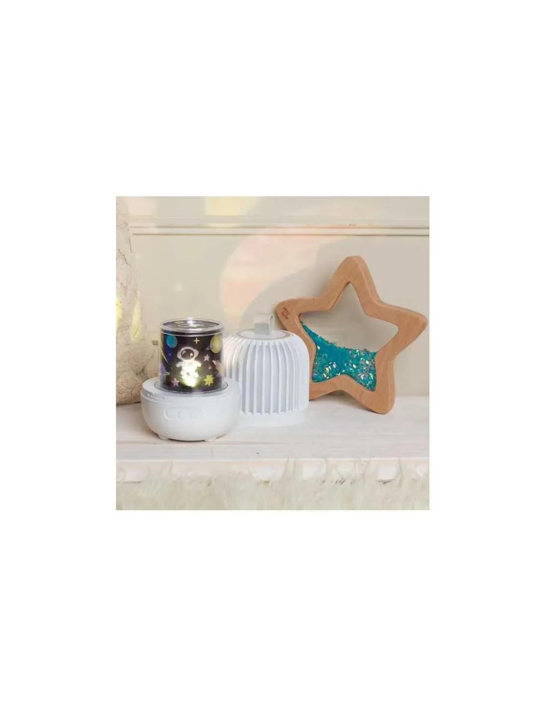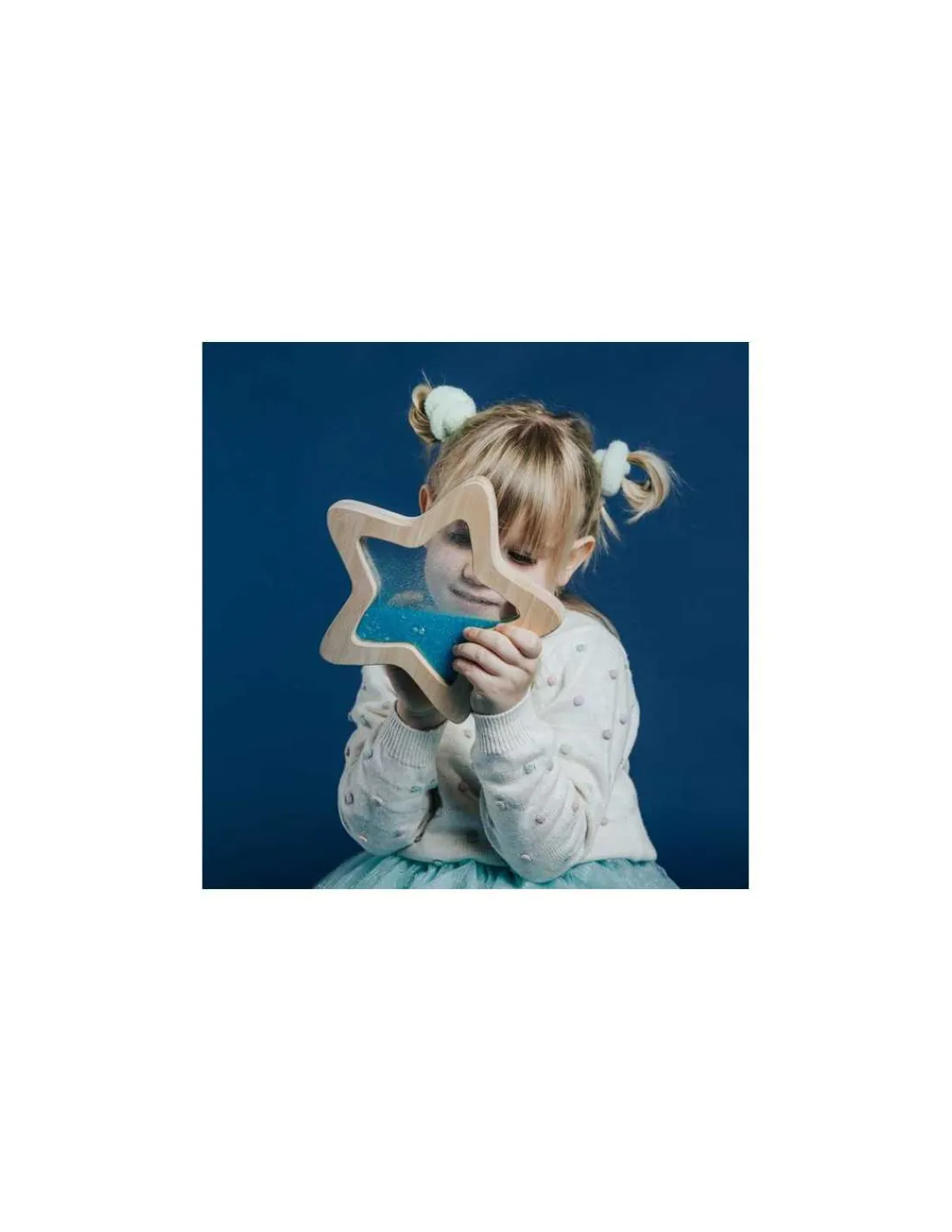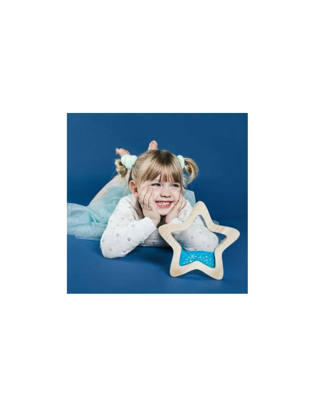 Un petit morceau de galaxie au bout des doigts… Une jolie étoile avec un cadre en bois de hêtre qui viendra stimuler l’imagination de votre enfant à chaque fois qu’il la secouera. Il suffit d’un mouvement pour s’émerveiller en observant les éclats d’étoiles et les effets que la lumière crée en les traversant!
