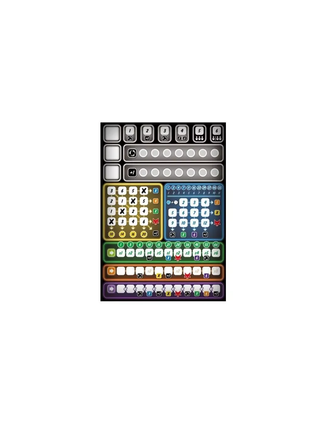 Chaque partie de votre grille correspond à un dé spécifique et à une façon de scorer particulière. Chaque lancé de dés sera donc l’occasion d’un choix stratégique, et vous donnera accès à des bonus. Mais attention, les dés que vous ne choisissez pas pourront être utilisés par vos adversaires.