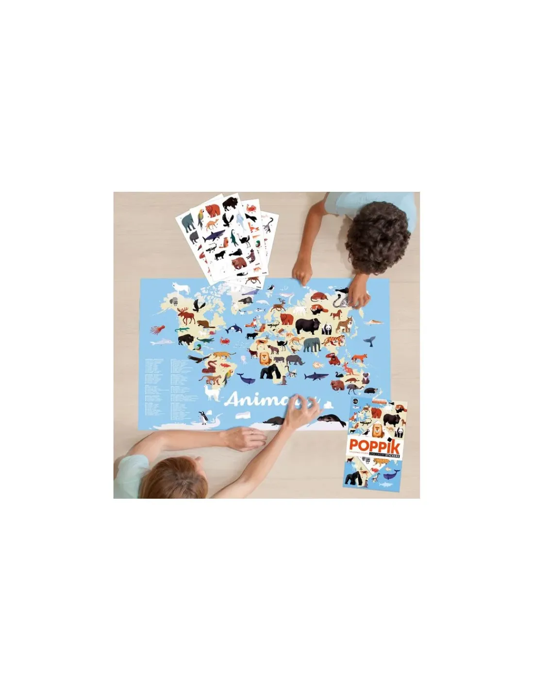 Découvrez le poster en stickers animaux du monde de Poppik, un poster de planisphère géant à compléter avec des 76 stickers d’animaux emblématiques et à afficher au mur de sa chambre pour la décorer. Une activité manuelle et créative pour les enfants à partir de 5 ans.