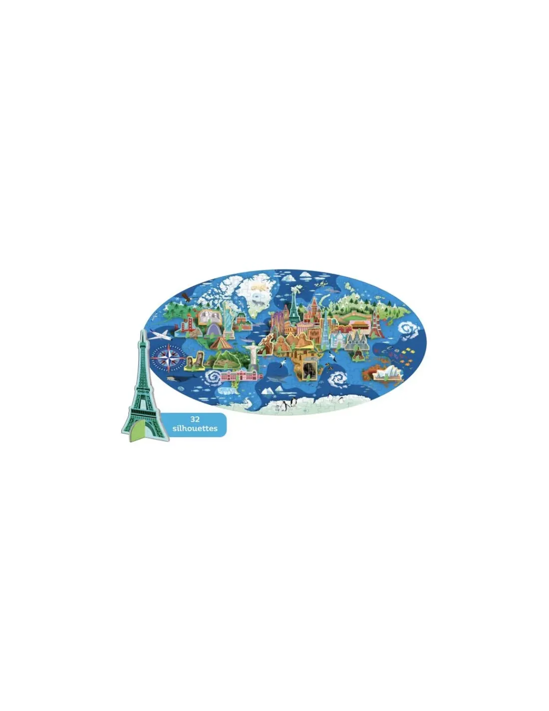 Découvrez le coffret livre et puzzle Les monuments du monde de la collection « Voyage, découvre, explore » de Sassi, un cadeau éducatif pour les enfants dès 6 ans comprenant un livre de 32 pages, un puzzle ovale de 200 pièces et 32 silhouettes de monument pour connaitre de nombreux monuments du monde inscrits au patrimoine mondial de l’UNESCO et stimuler l’apprentissage de la géographie avec des silhouettes à placer sur le puzzle.