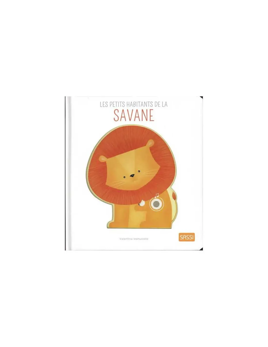 Découvrez le livre sonore les petits habitants de la savane de Sassi, un grand livre de 12 pages pour écouter les sons des animaux de la savane: lion, hippopotame, girafe… Un superbe cadeau pour passer de beaux moments avec son enfant.